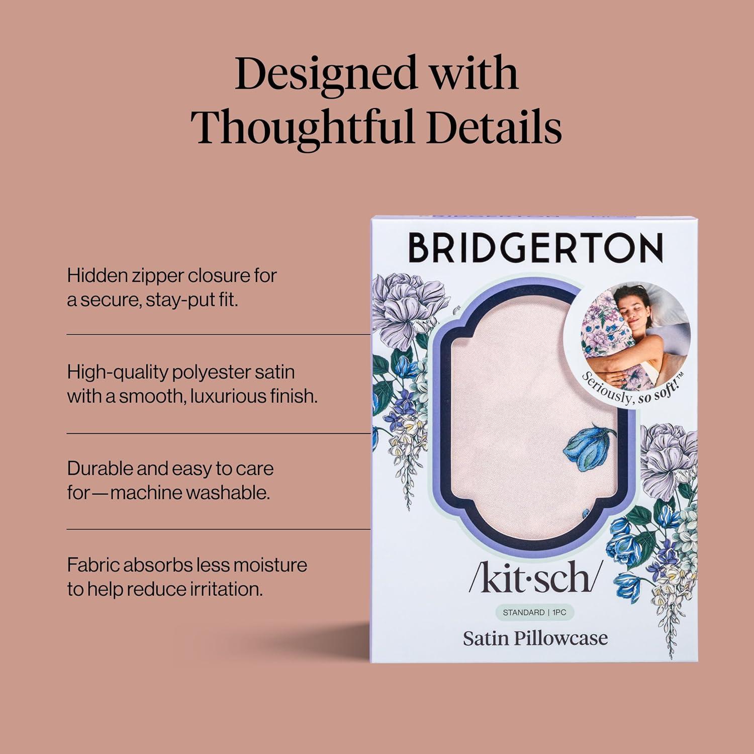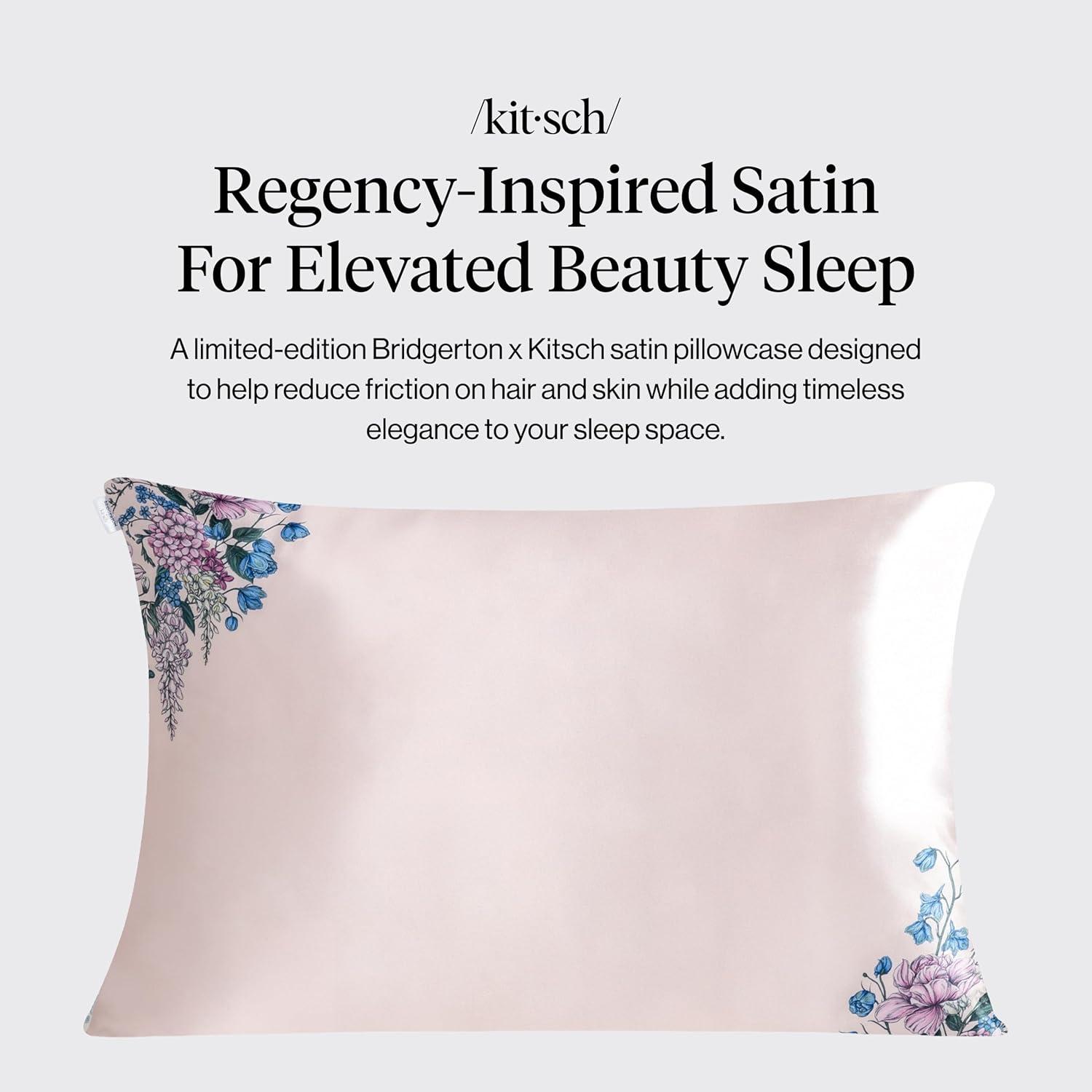 Bridgerton x Kitsch Satin Scrunchies for Women, No Snag, No Tugging, Soft & Comfortable Scrunchies for Girls, Perfect for Day or Night | Ideal Gifts for Women - Toile De Blue, 2pcs(Black (4 pcs))