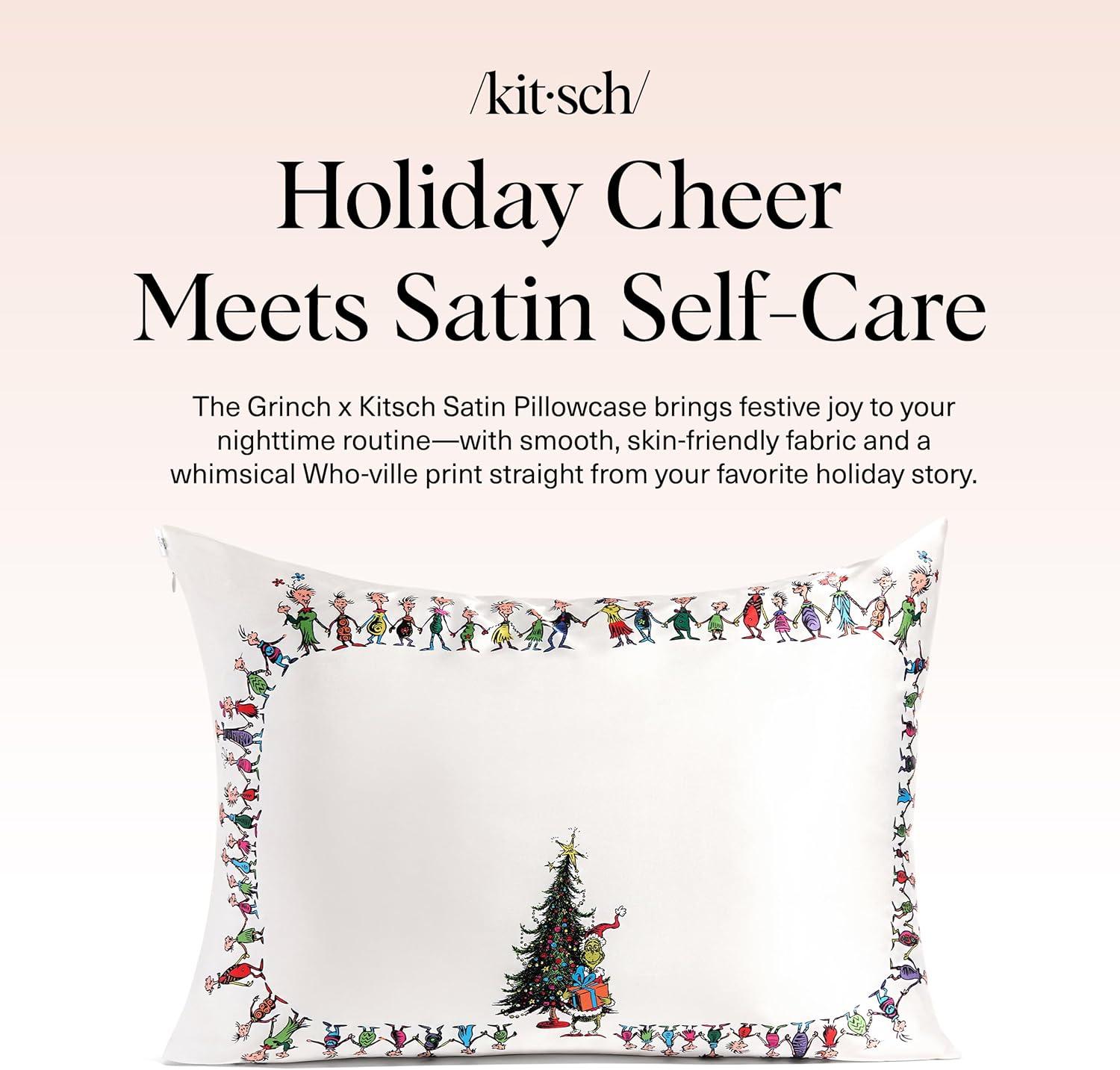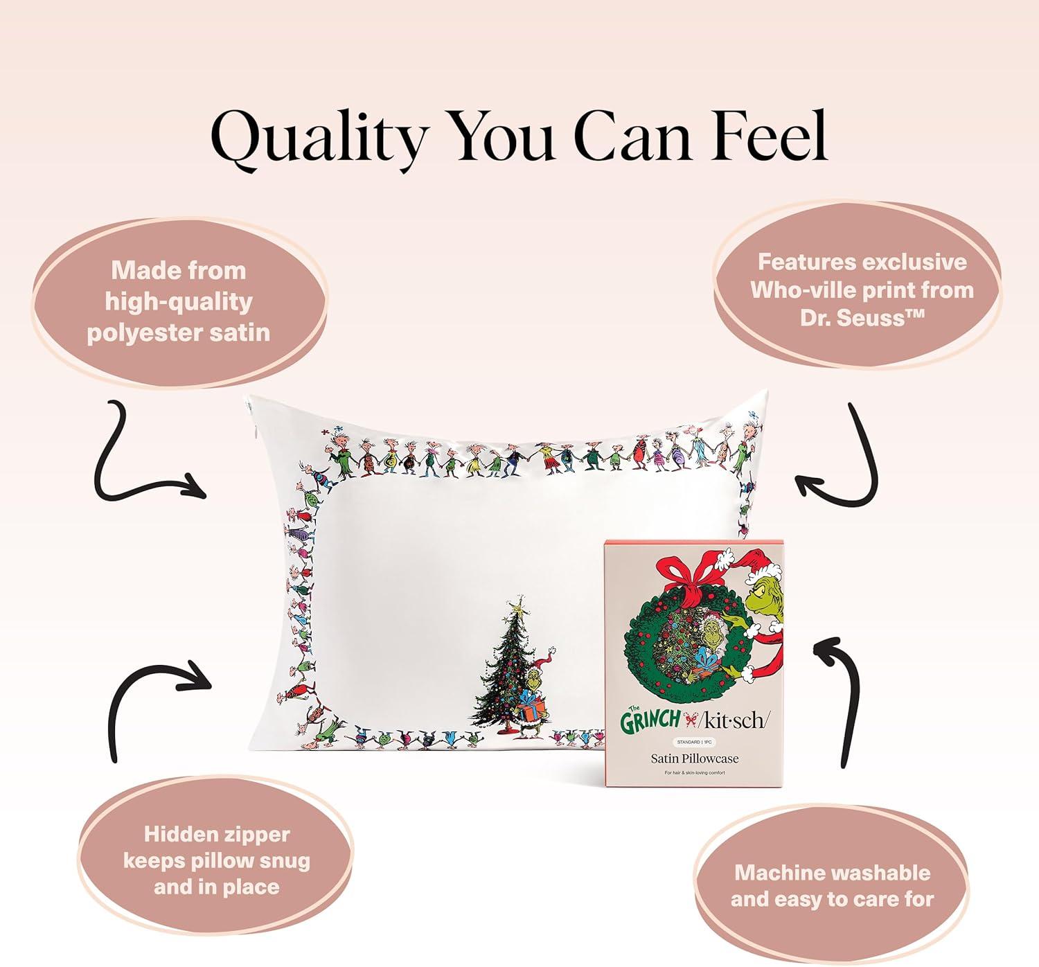 • Kitsch x Lisa Frank Satin Pillowcase with Zipper for Hair & Skin, Softer Than Silk Pillow Cases Queen, Wrinkle-Free, Smooth and Cooling Satin Pillow Covers Standard/Queen Size 19×26 – Angel Kitty(Who-ville)