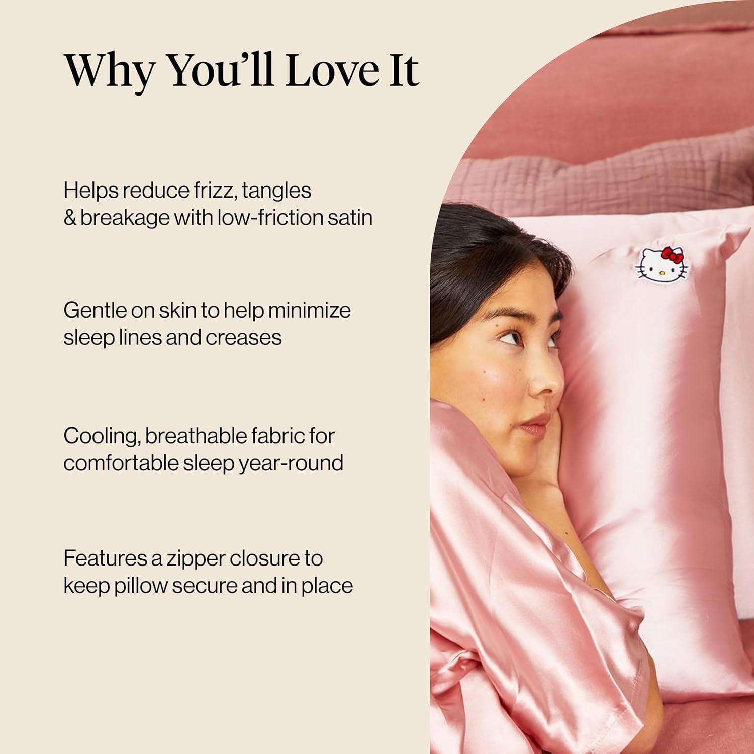• Kitsch x Lisa Frank Satin Pillowcase with Zipper for Hair & Skin, Softer Than Silk Pillow Cases Queen, Wrinkle-Free, Smooth and Cooling Satin Pillow Covers Standard/Queen Size 19×26 – Angel Kitty(Hello Kitty – Pink Kitty Face)
