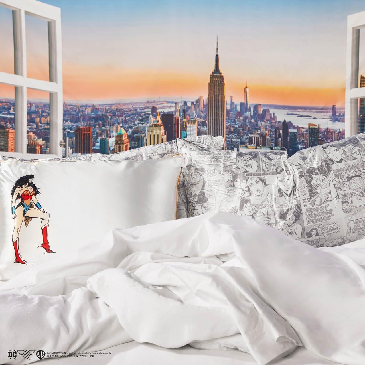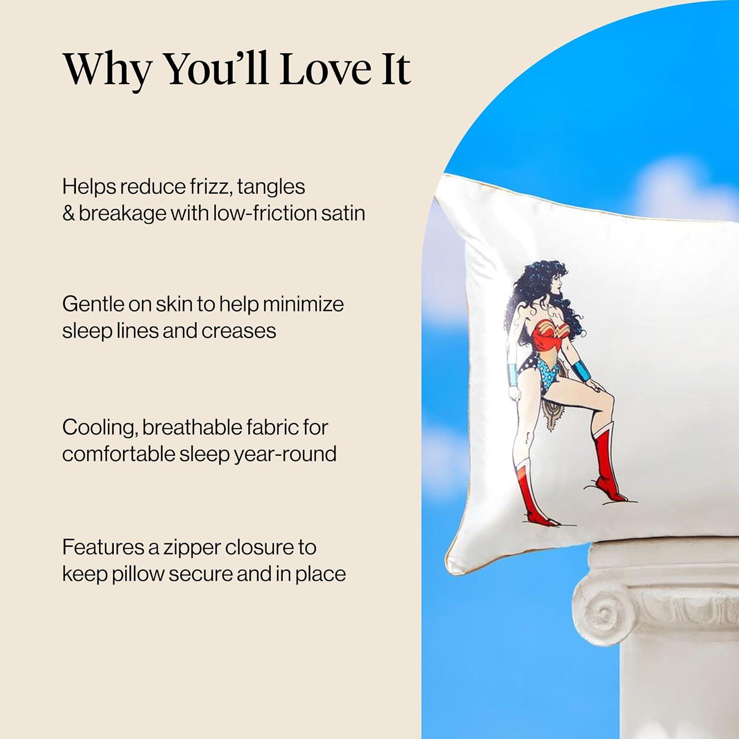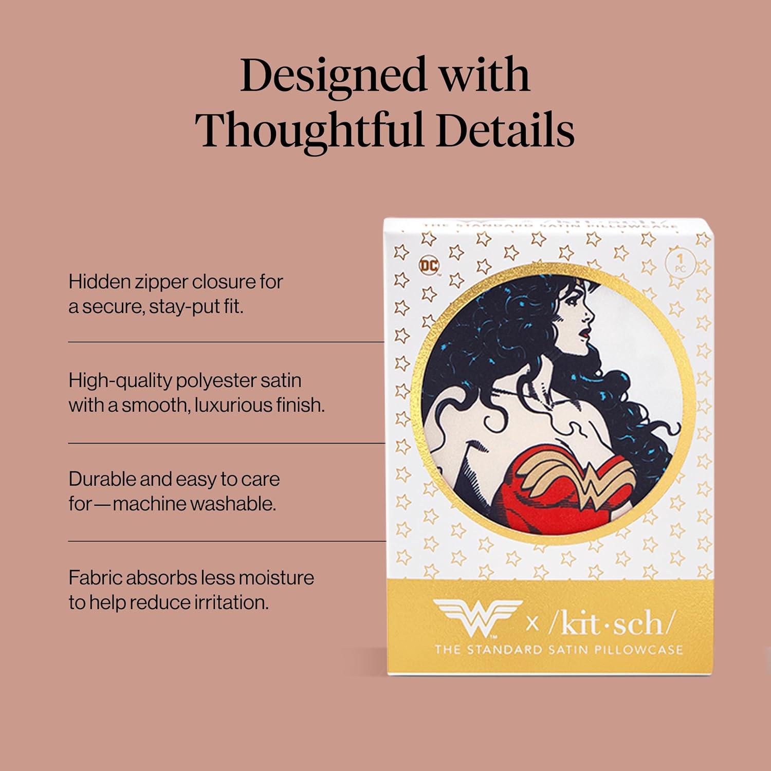 • Kitsch x Lisa Frank Satin Pillowcase with Zipper for Hair & Skin, Softer Than Silk Pillow Cases Queen, Wrinkle-Free, Smooth and Cooling Satin Pillow Covers Standard/Queen Size 19×26 – Angel Kitty(Wonder Woman – Comic)