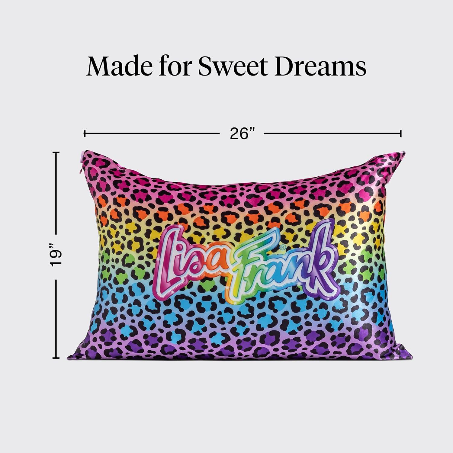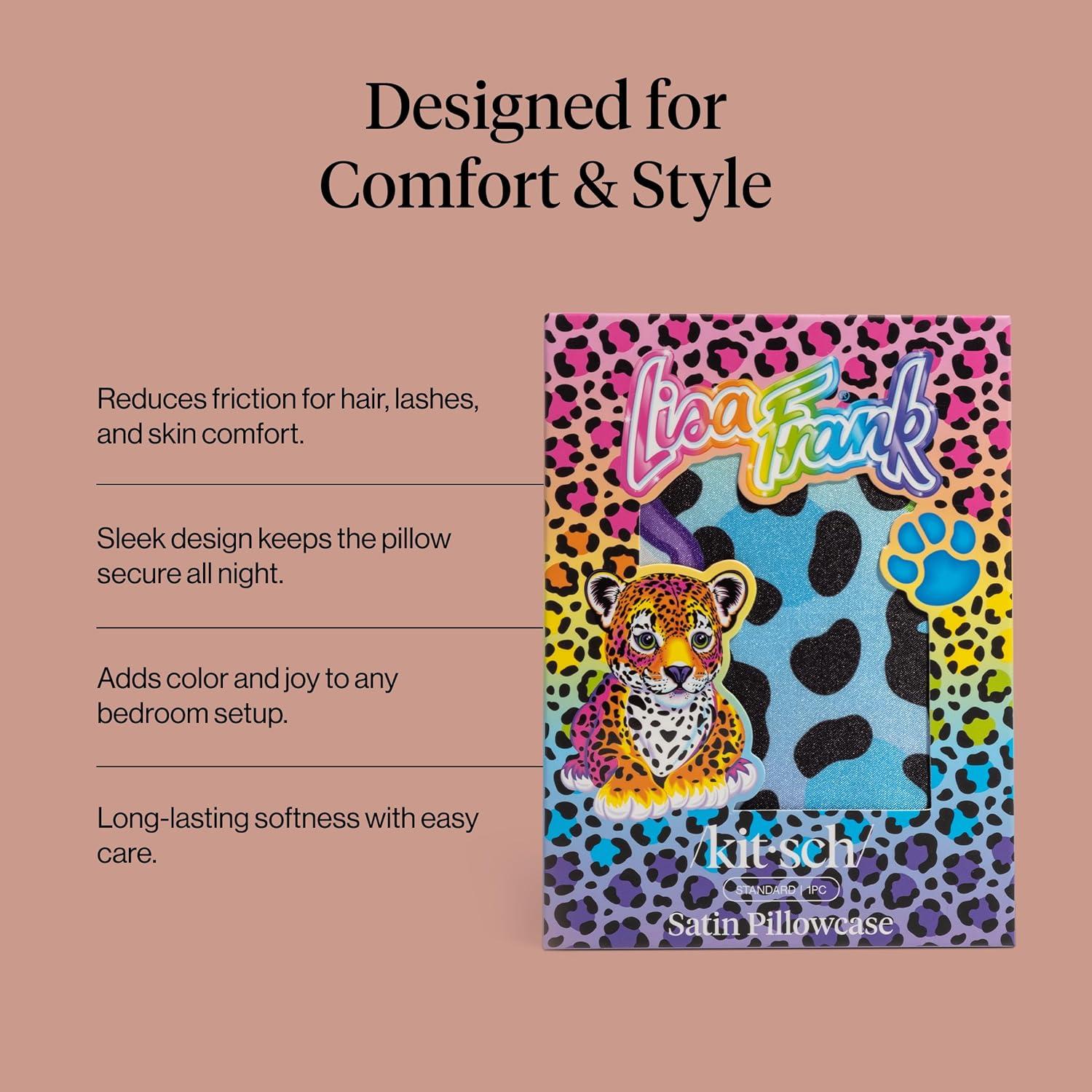• Kitsch x Lisa Frank Satin Pillowcase with Zipper for Hair & Skin, Softer Than Silk Pillow Cases Queen, Wrinkle-Free, Smooth and Cooling Satin Pillow Covers Standard/Queen Size 19×26 – Angel Kitty(Rainbow Leopard)
