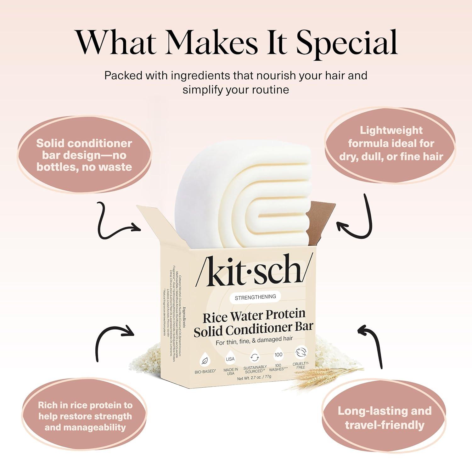 Kitsch Rice Water Conditioner Bar for Hair Growth – Rice Protein Hair Conditioner Bar to Repair Damage, Prevent Split Ends & Boosts Shine – Paraben, Silicone & Sulfate-Free Hair Care – 2.7 oz(2.7 Ounce (Pack of 1))