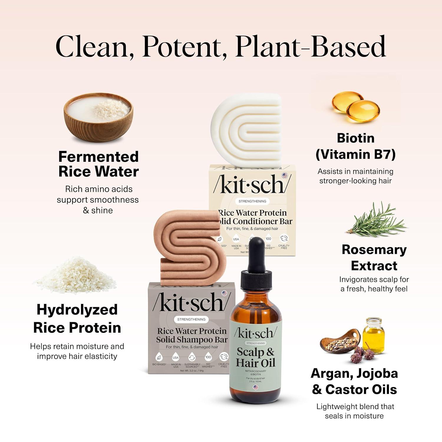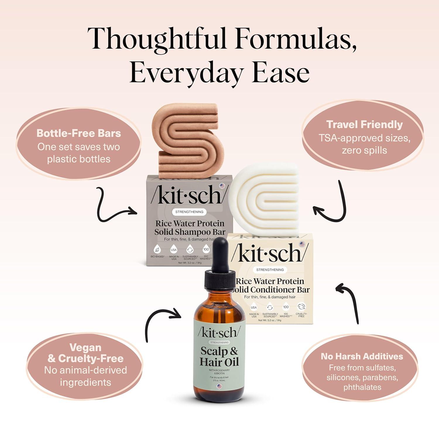Kitsch Rice Water Protein Solid Shampoo and Conditioner Set for Hair Growth – Strengthening Hair Care Duo w/Rice Protein & Vitamins for Damage Repair – Paraben, Sulfate & Silicone Free, Made in USA