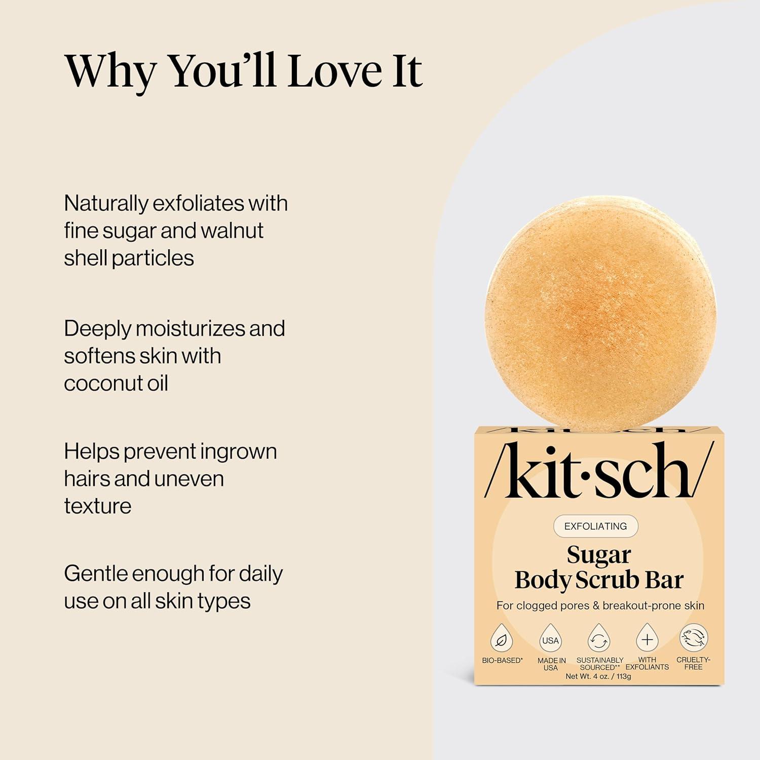 Kitsch Exfoliating Sugar Scrub for Body – All Natural Body Scrub Bar Soap for Smooth, Hydrated & Glowing Skin – Vegan Soap Bar Exfoliator for Men and Women – Made in the USA – 4 oz