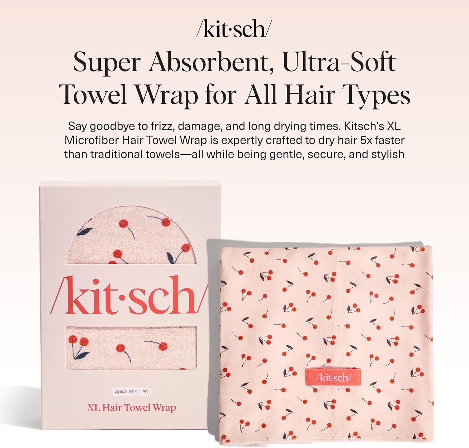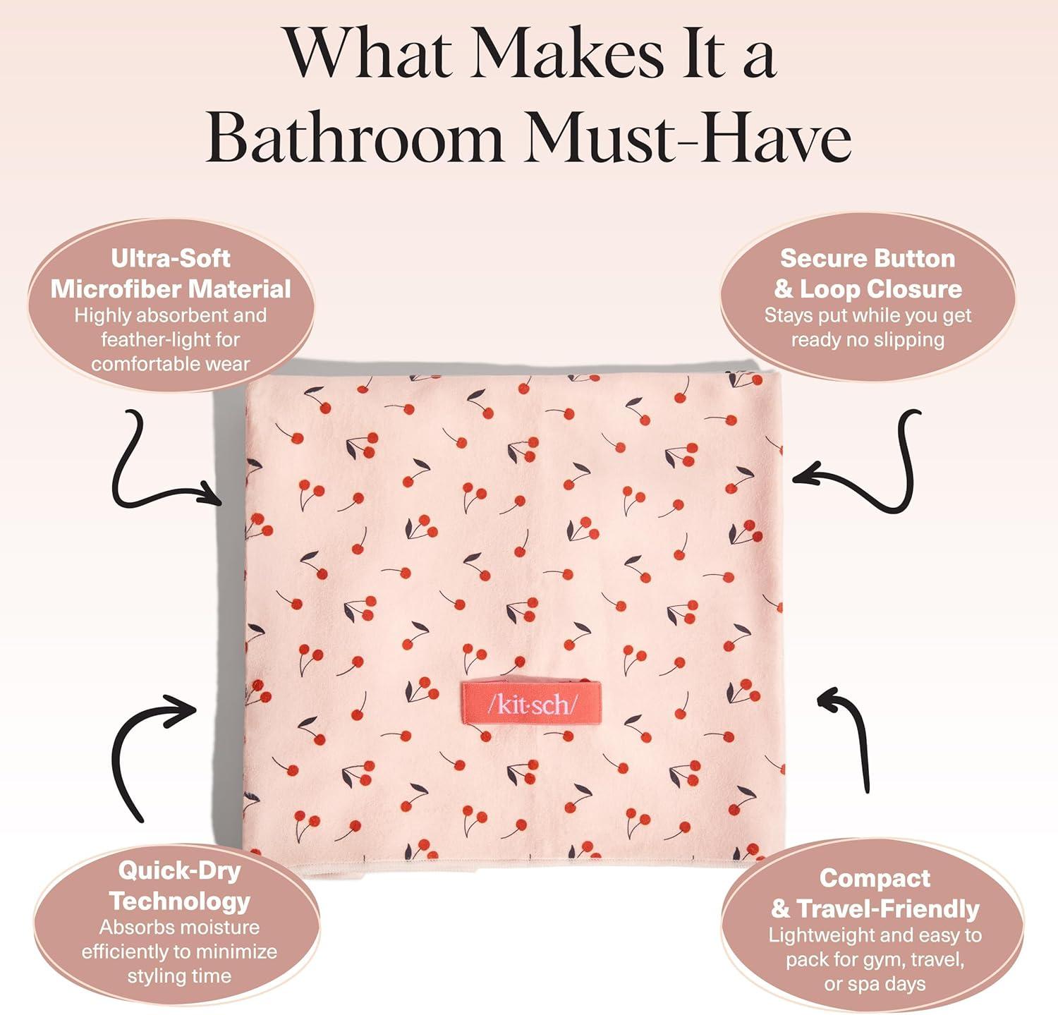 Kitsch XL Microfiber Hair Towel Wrap for Women – Microfiber Towel, Super Absorbent, Quick Dry, Anti-Frizz – for Long & Short Hairs, Turbans for Women(Cherry Print)