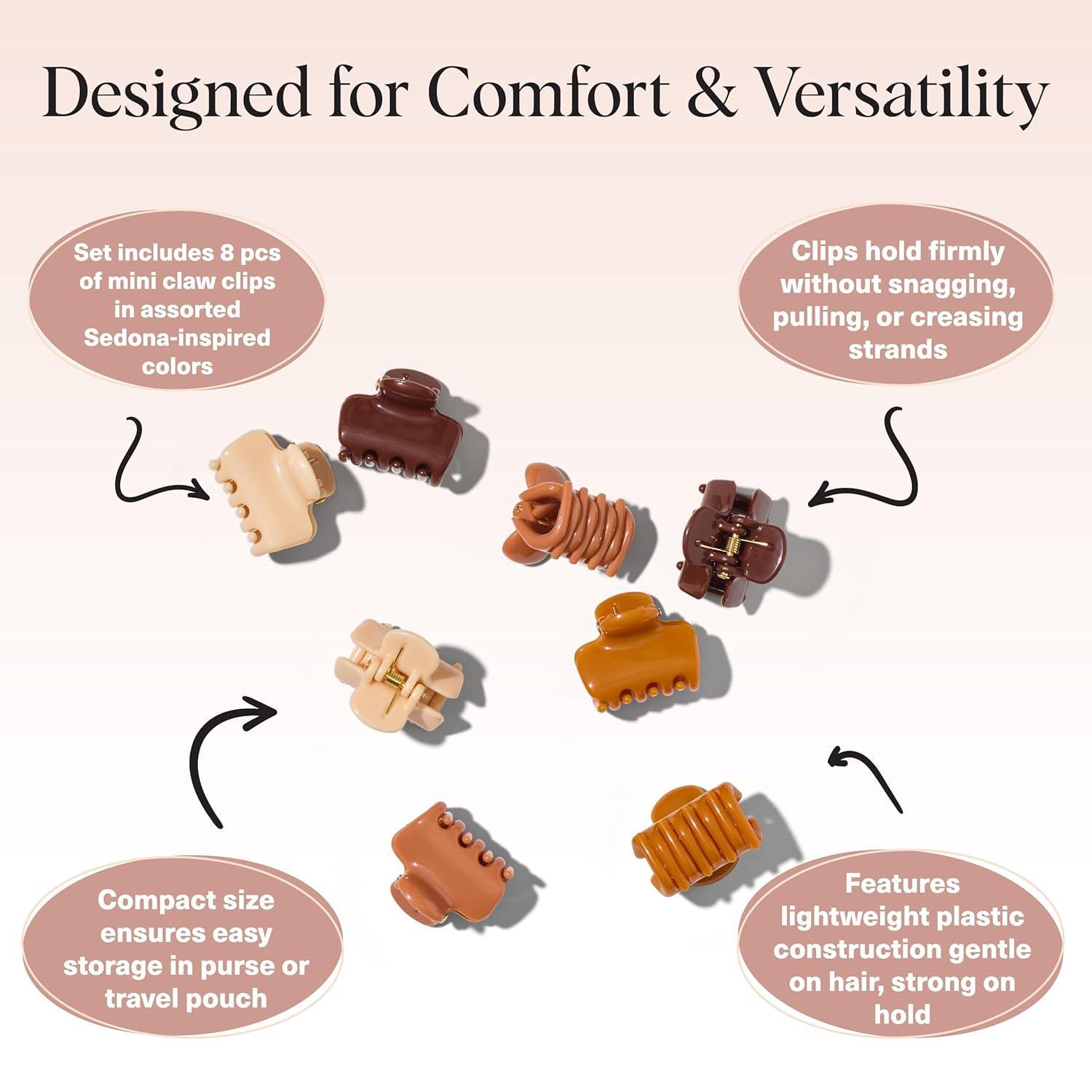 Kitsch Small Hair Clips for Women and Girls – Mini Claw Clips | Hair Accessories | Daily Styling, Recycled, Cherry Blossom Design | Ideal Gifts for Women – 8pc Set(Sedona)