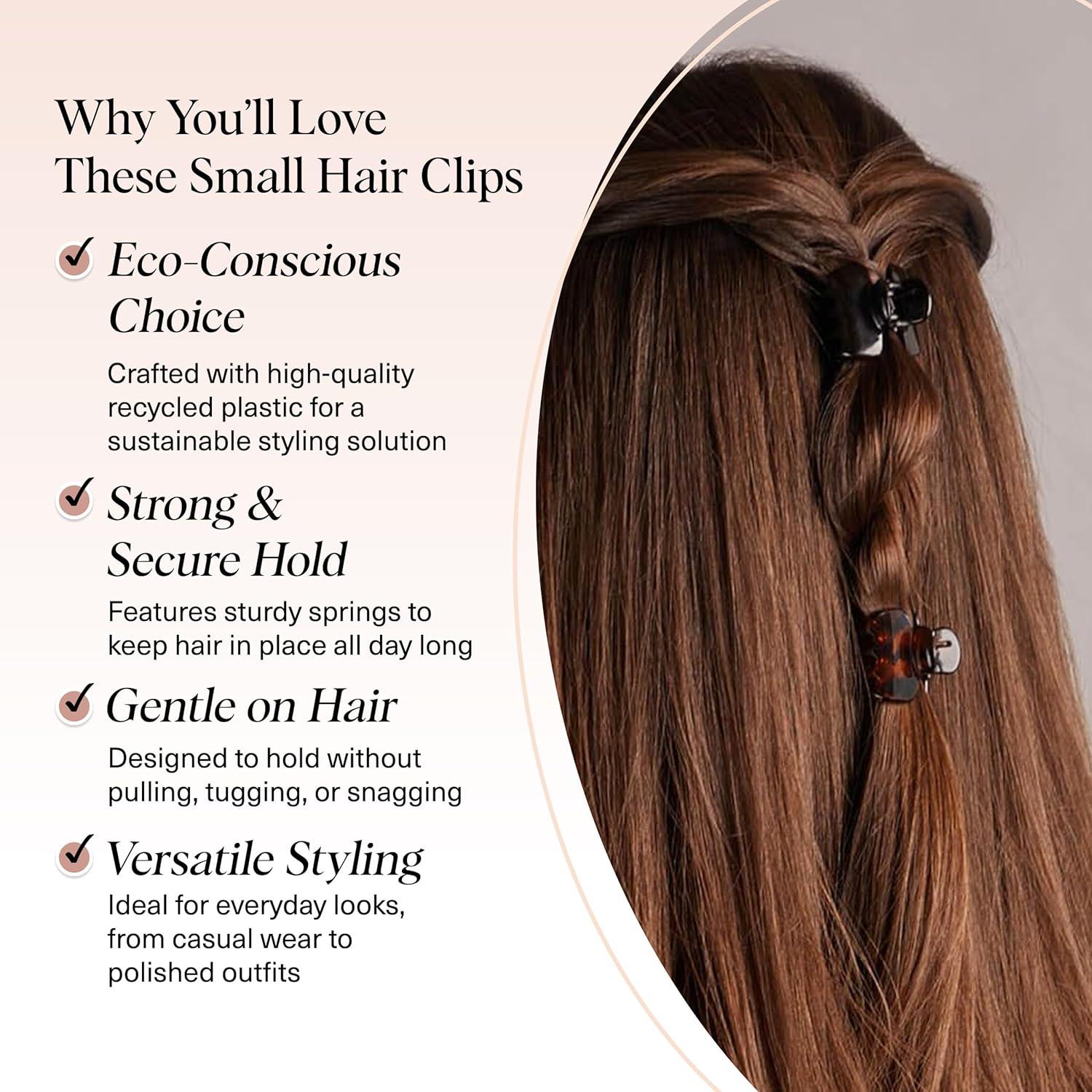 Kitsch Small Hair Clips for Women and Girls – Mini Claw Clips | Hair Accessories | Daily Styling, Recycled, Cherry Blossom Design | Ideal Gifts for Women – 8pc Set(Black and Tort)