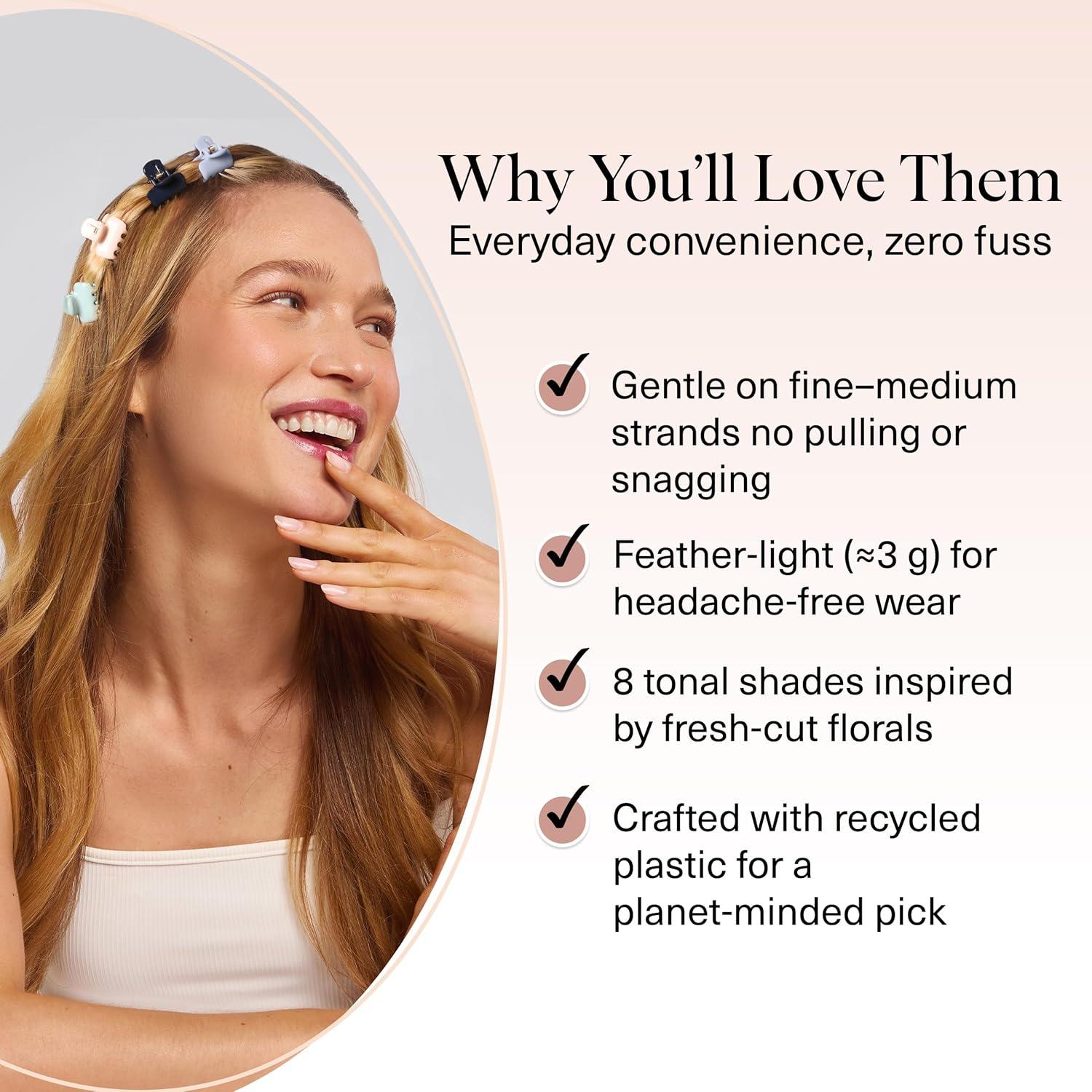 Kitsch Small Hair Clips for Women and Girls – Mini Claw Clips | Hair Accessories | Daily Styling, Recycled, Cherry Blossom Design | Ideal Gifts for Women – 8pc Set(Garden Bouquet)