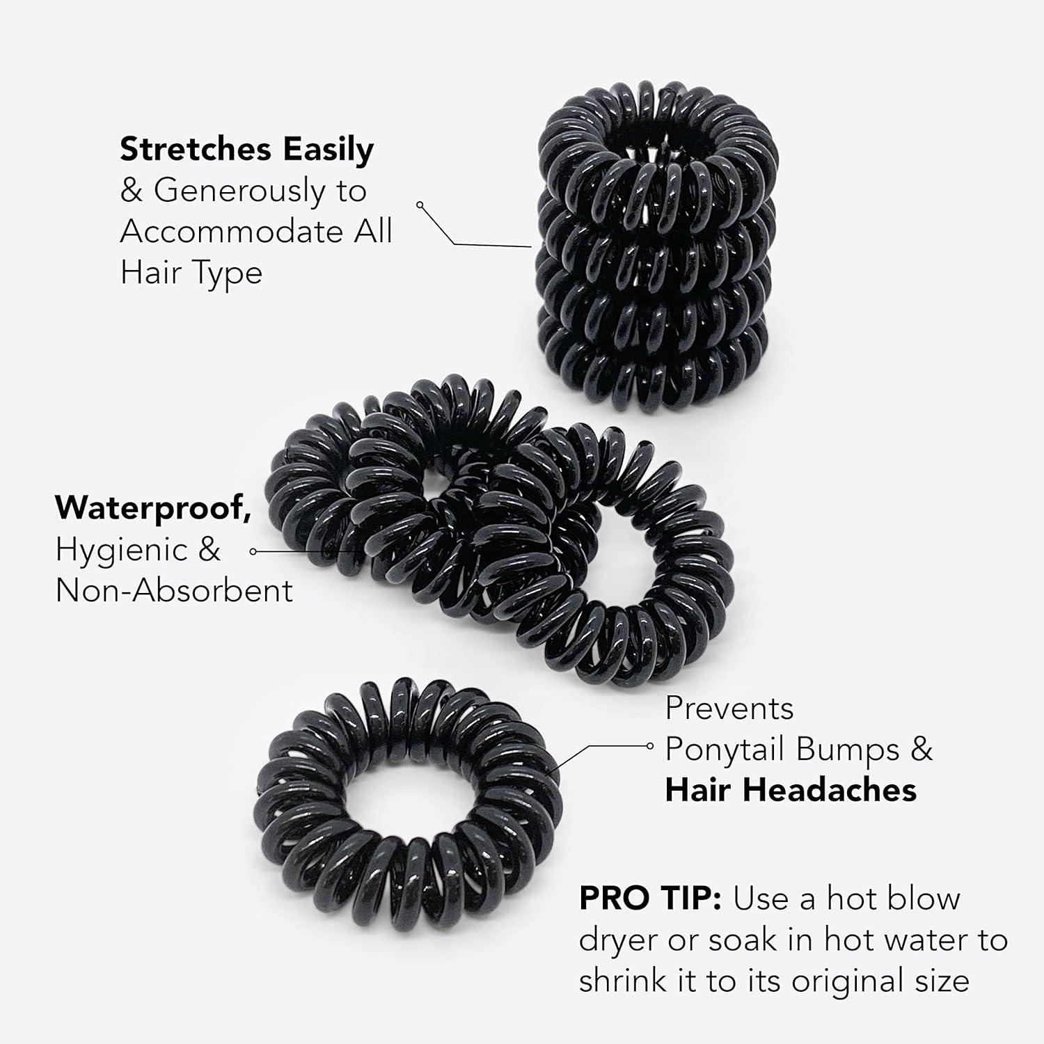 Kitsch Spiral Hair Ties for Women – Black Elastic Hair Ties No Damage, Ponytail Holders for Thick and Thin Hair – Creaseless and Dent-Free Coil | Ideal Gifts for Women – 8pc Set, Black(Black)