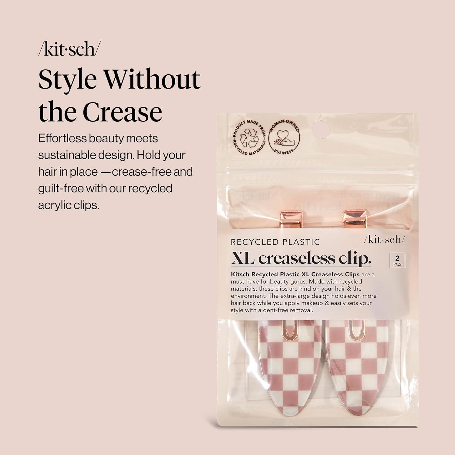 Kitsch Creaseless Hair Clips for Women – No Crease, No Bend Hair Clips for Styling, Bangs, Makeup Application, Face Wash – Recycled Acrylic – Cherry Print | Ideal Gifts for Women, 4pcs(Terracotta Checkered)