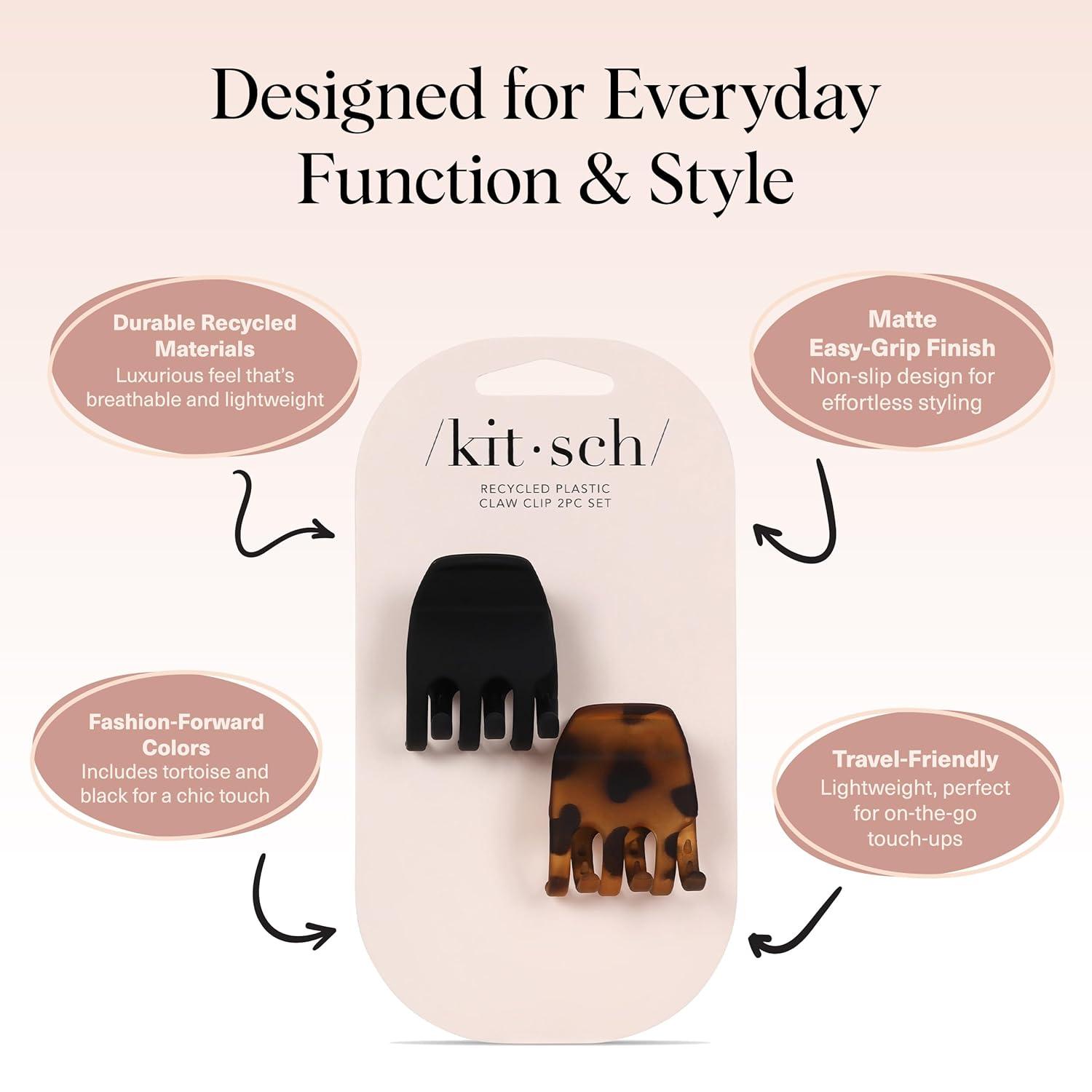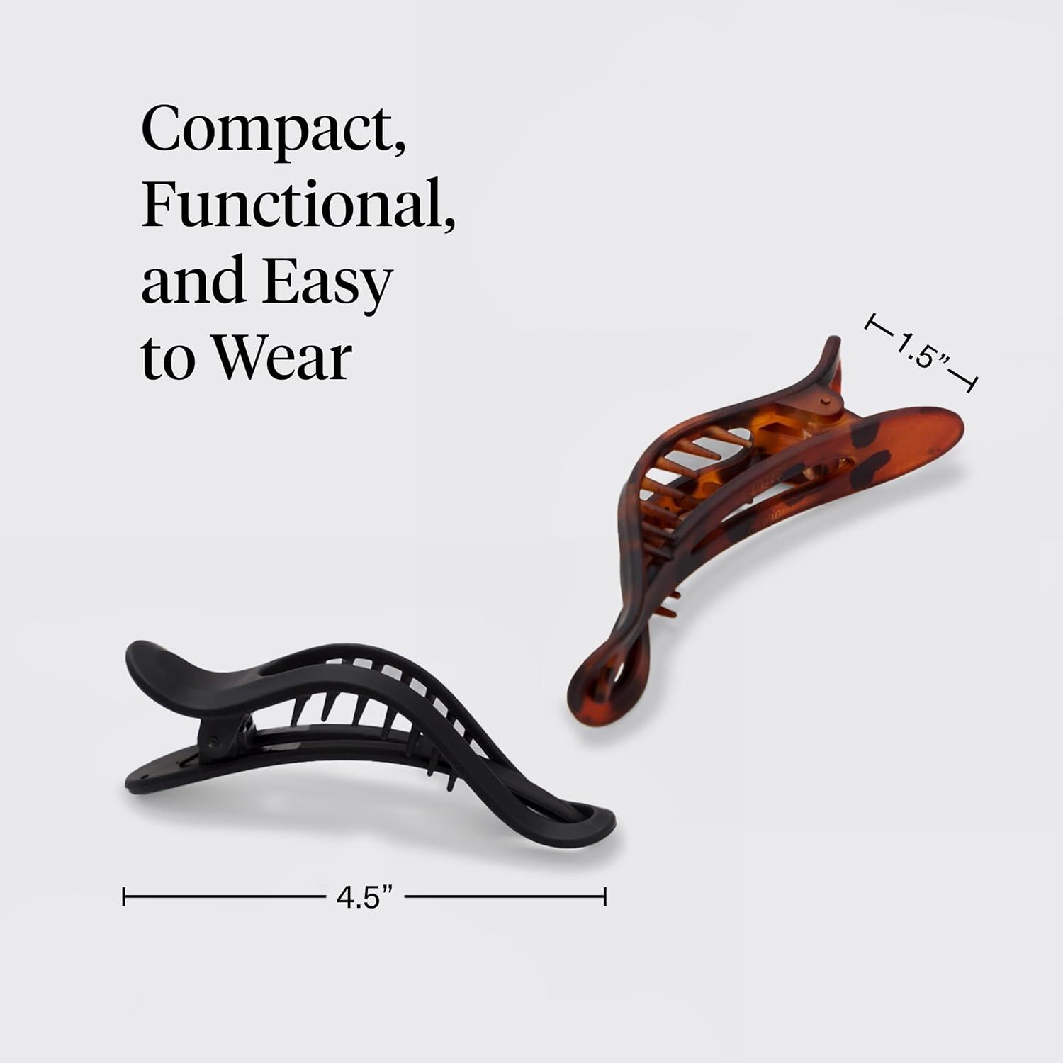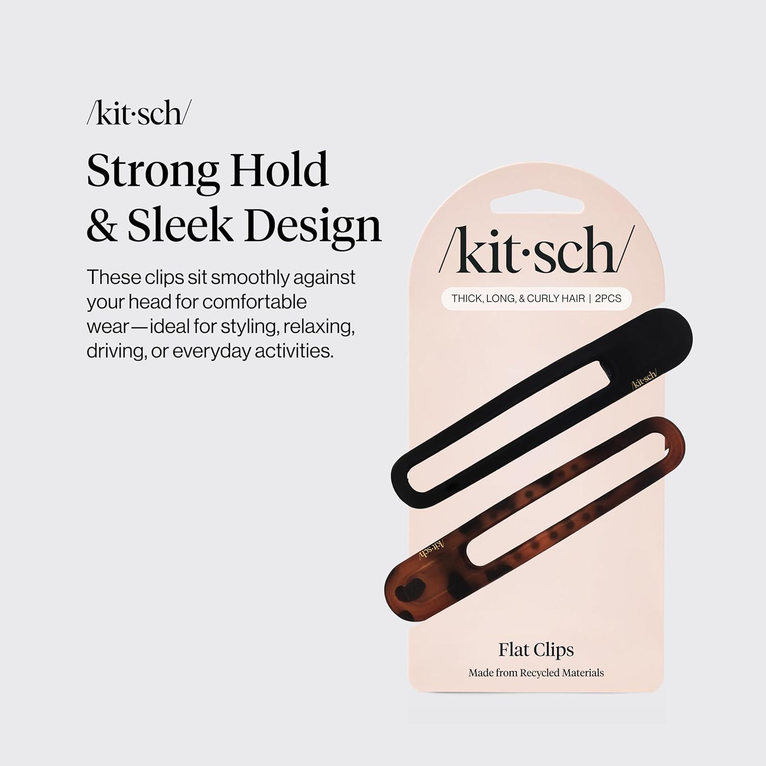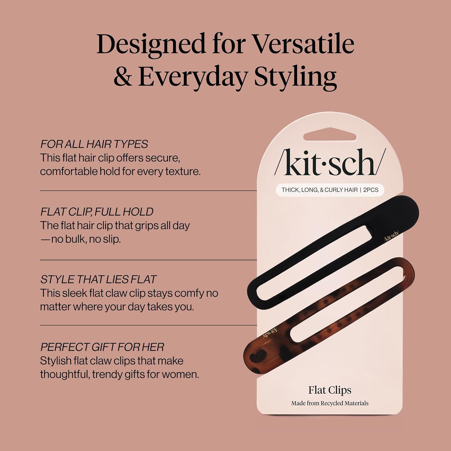 Kitsch Flat Hair Clips for Women – Strong Hold, No Slip Grip Flat Claw Clips For Secure and Comfortable Look | Durable Recycled Plastic Hair Accessories | Ideal Gifts for Women – Black & Tortoise, 2pc(Black & Tort)