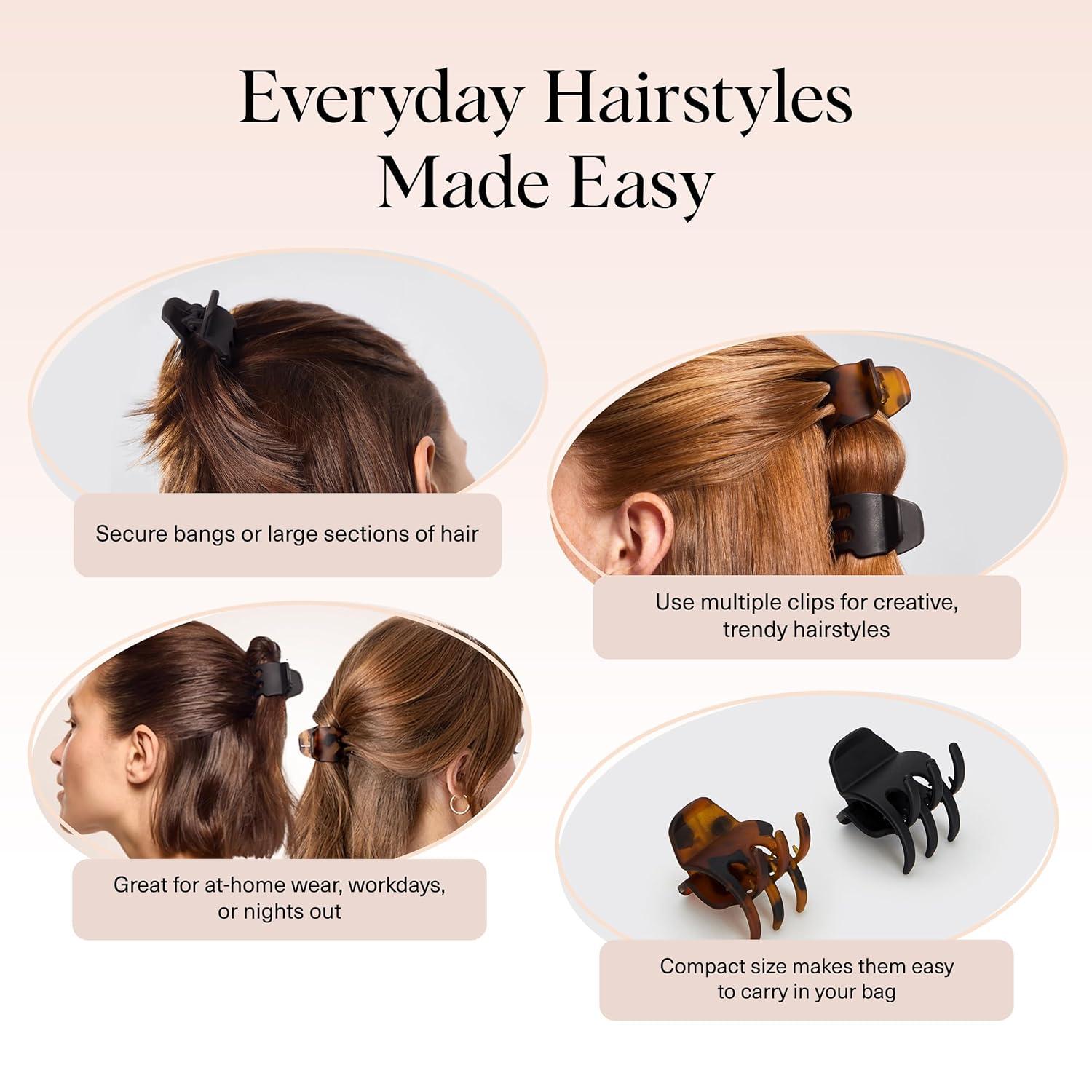Kitsch Eco-Friendly Medium Claw Clips – Cute & Stylish Short Hair Accessories for Women, Girls | Ideal Size for Any Hairstyles | Ideal Gifts for Women, 2pcs (Black & Tortoise)(Tortoise and Black (6 Pieces X-Small))