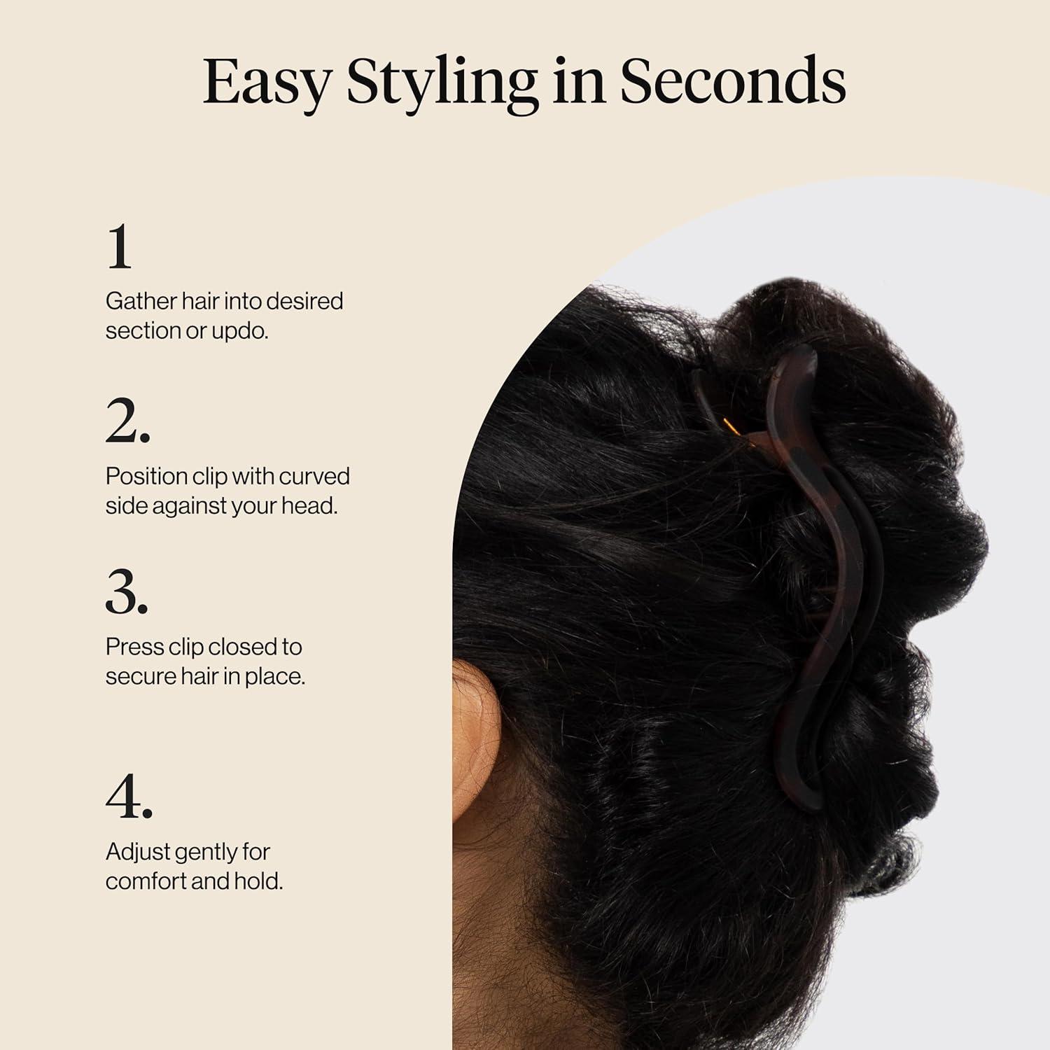 Kitsch Flat Hair Clips for Women – Strong Hold, No Slip Grip Flat Claw Clips | Sleek Curved Design For Comfortable Look | Hair Accessories For Girls | Ideal Gifts for Women – Black & Tortoise, 2pcs