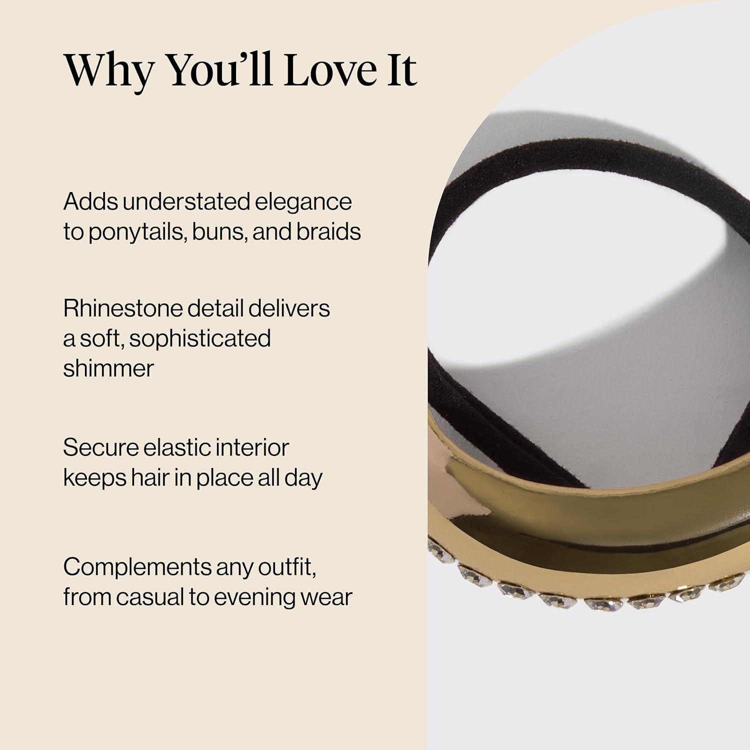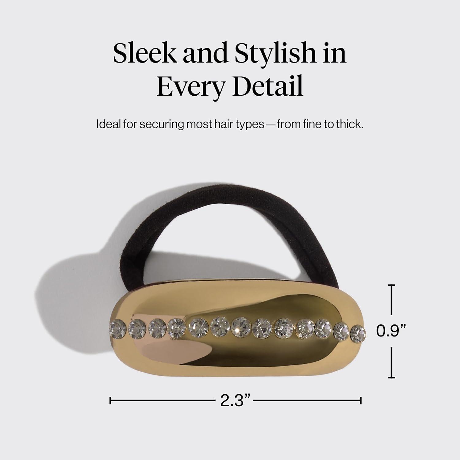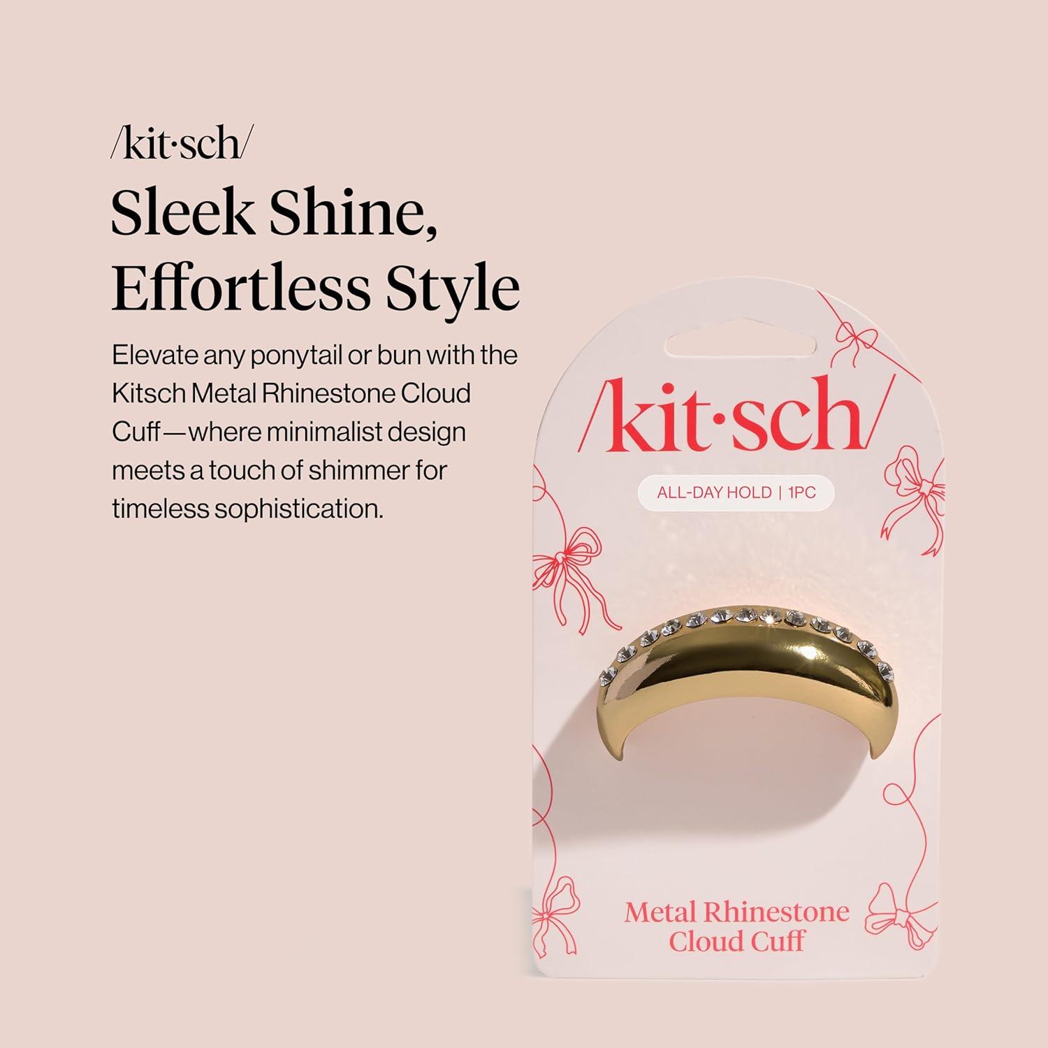 Kitsch Gold Hair Cuff – Metal Ponytail Cuff for Braids, Updos & Everyday Hairstyle | Durable & Elegant Hair Ties | Girl Fashion Accessories – Medium, 1pc(Rhinestone Gold)