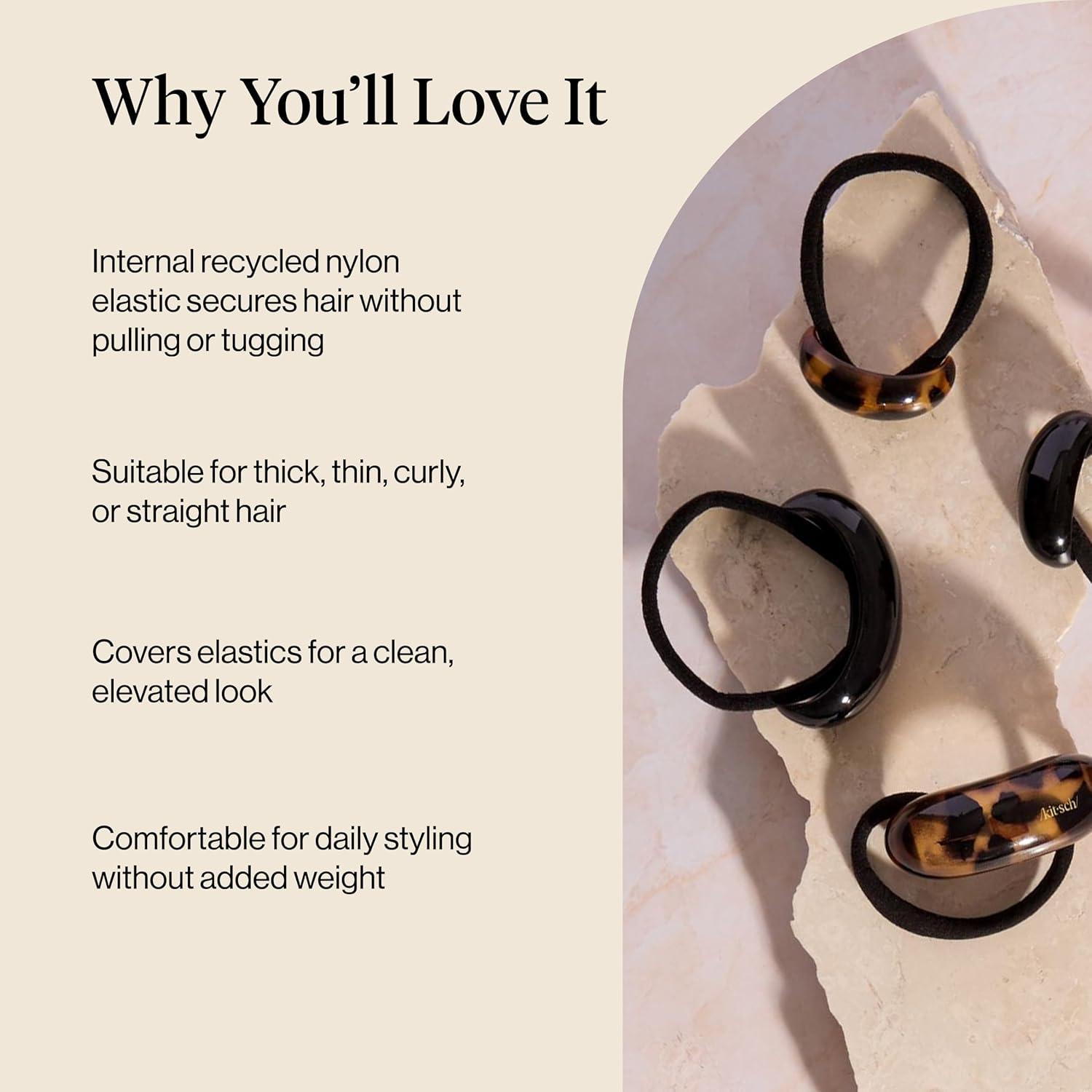Kitsch Gold Hair Cuff – Metal Ponytail Cuff for Braids, Updos & Everyday Hairstyle | Durable & Elegant Hair Ties | Girl Fashion Accessories – Medium, 1pc(Black & Tort)