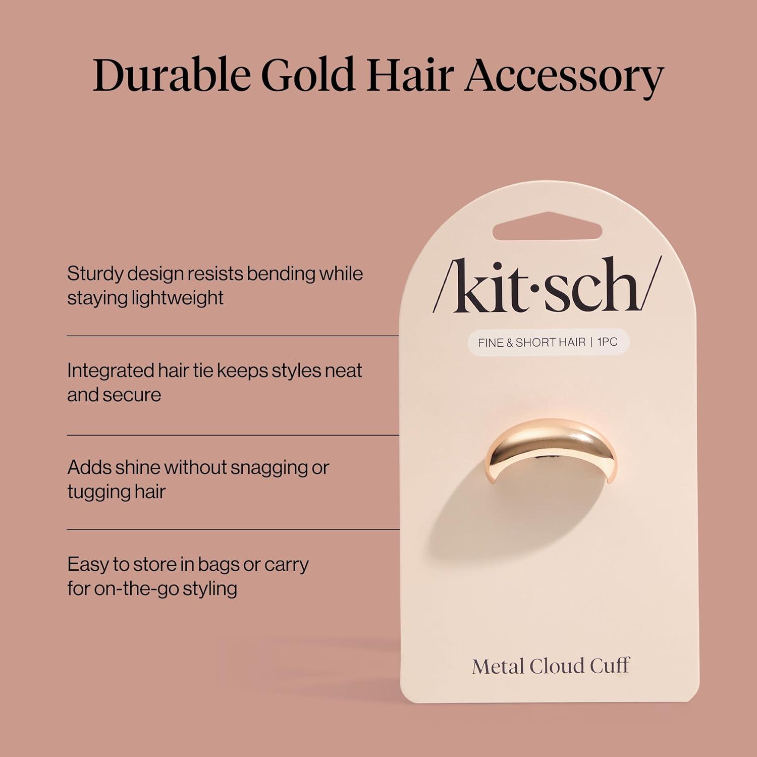 Kitsch Gold Hair Cuff – Metal Ponytail Cuff for Braids, Updos & Everyday Hairstyle | Durable & Elegant Hair Ties | Girl Fashion Accessories – Medium, 1pc(Gold)