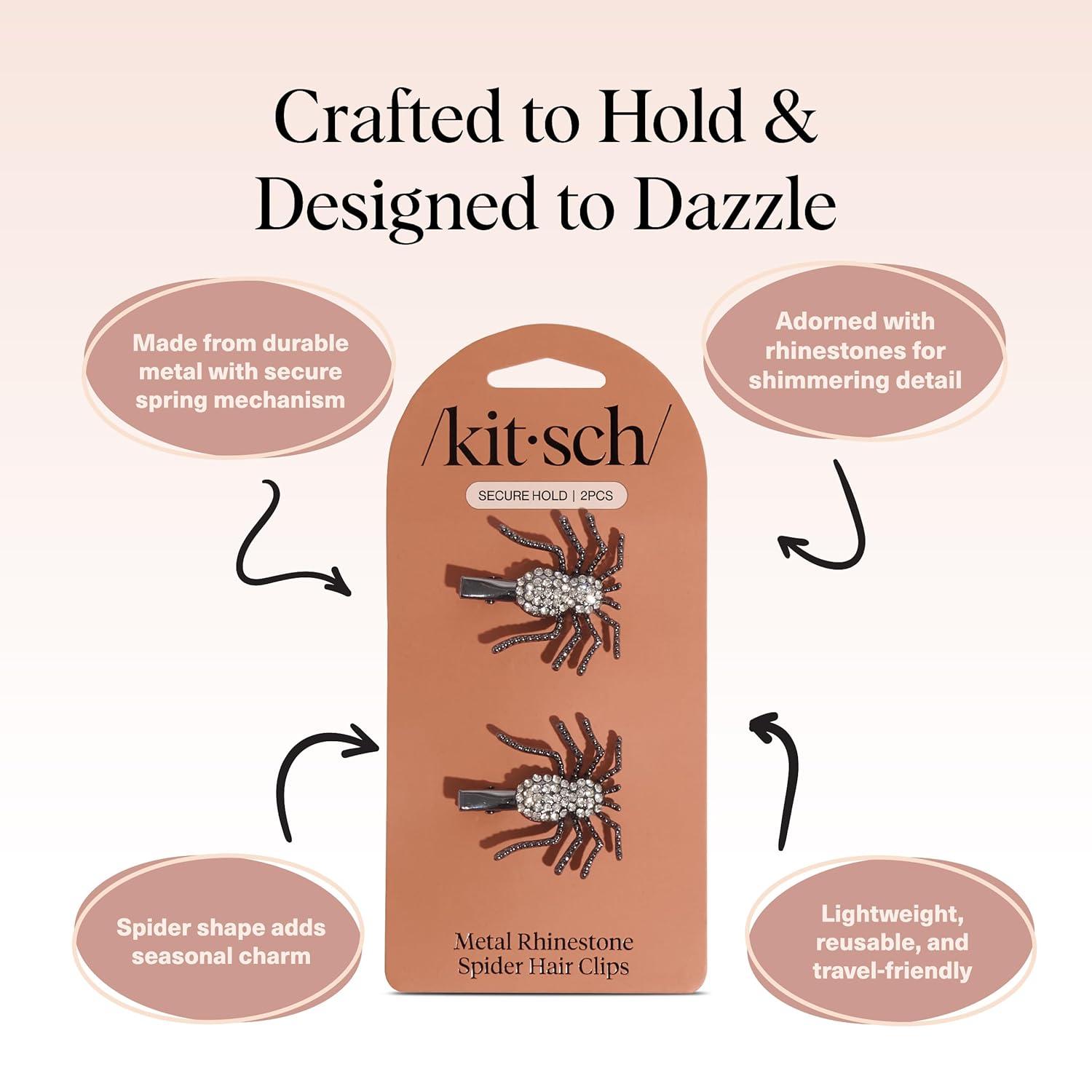 Kitsch Hair Clips for Women & Bobby Pins – Gold Metal Snap Hair Barrettes | Stylish, No Slip, Pain-Free | Ideal for Everyday Hairstyles | Ideal Gifts for Women – Sedona, 8pc Set(Black Spider)