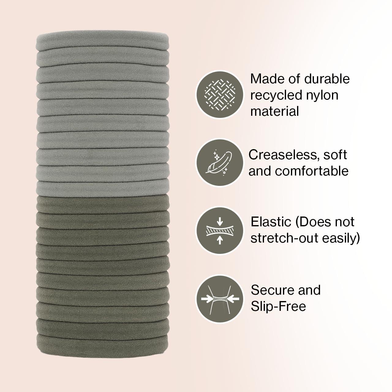 Kitsch Hair Ties No Damage – Strong, Stretchy Hair Bands | Soft Nylon Ponytail Holders, Snag-Free Rubber Bands, Perfect for Updos & Braids | Ideal Gifts for Women – Black, 8pcs(Eucalyptus (Pack of 20))