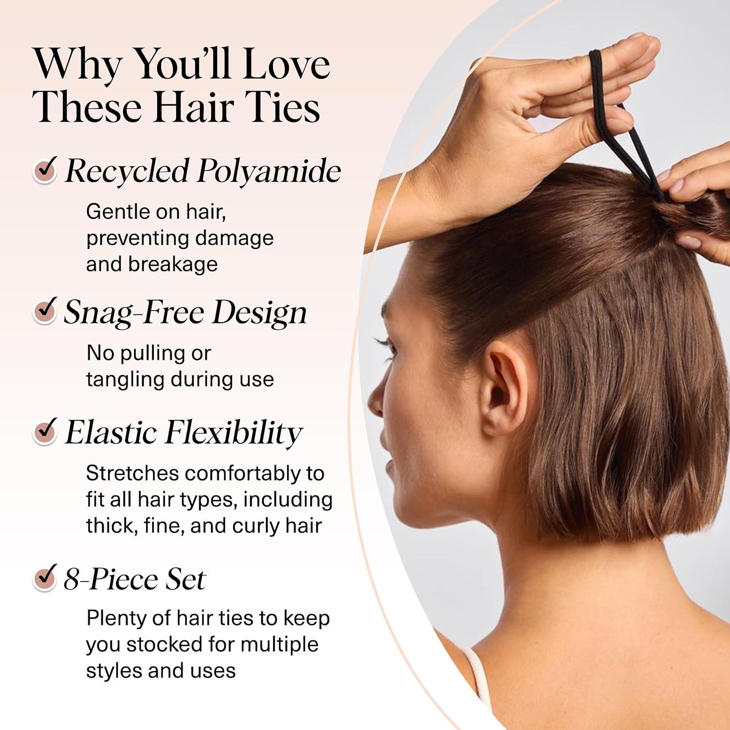 Kitsch Hair Ties No Damage – Strong, Stretchy Hair Bands | Soft Nylon Ponytail Holders, Snag-Free Rubber Bands, Perfect for Updos & Braids | Ideal Gifts for Women – Black, 8pcs(Black (Pack of 8))