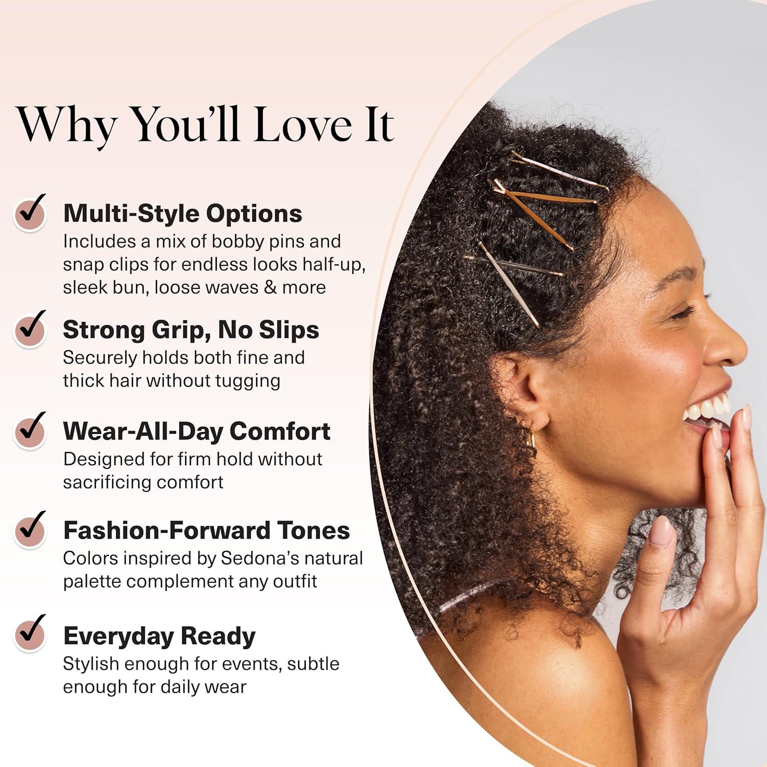 Kitsch Hair Clips for Women & Bobby Pins – Gold Metal Snap Hair Barrettes | Stylish, No Slip, Pain-Free | Ideal for Everyday Hairstyles | Ideal Gifts for Women – Sedona, 8pc Set(Rosewood)