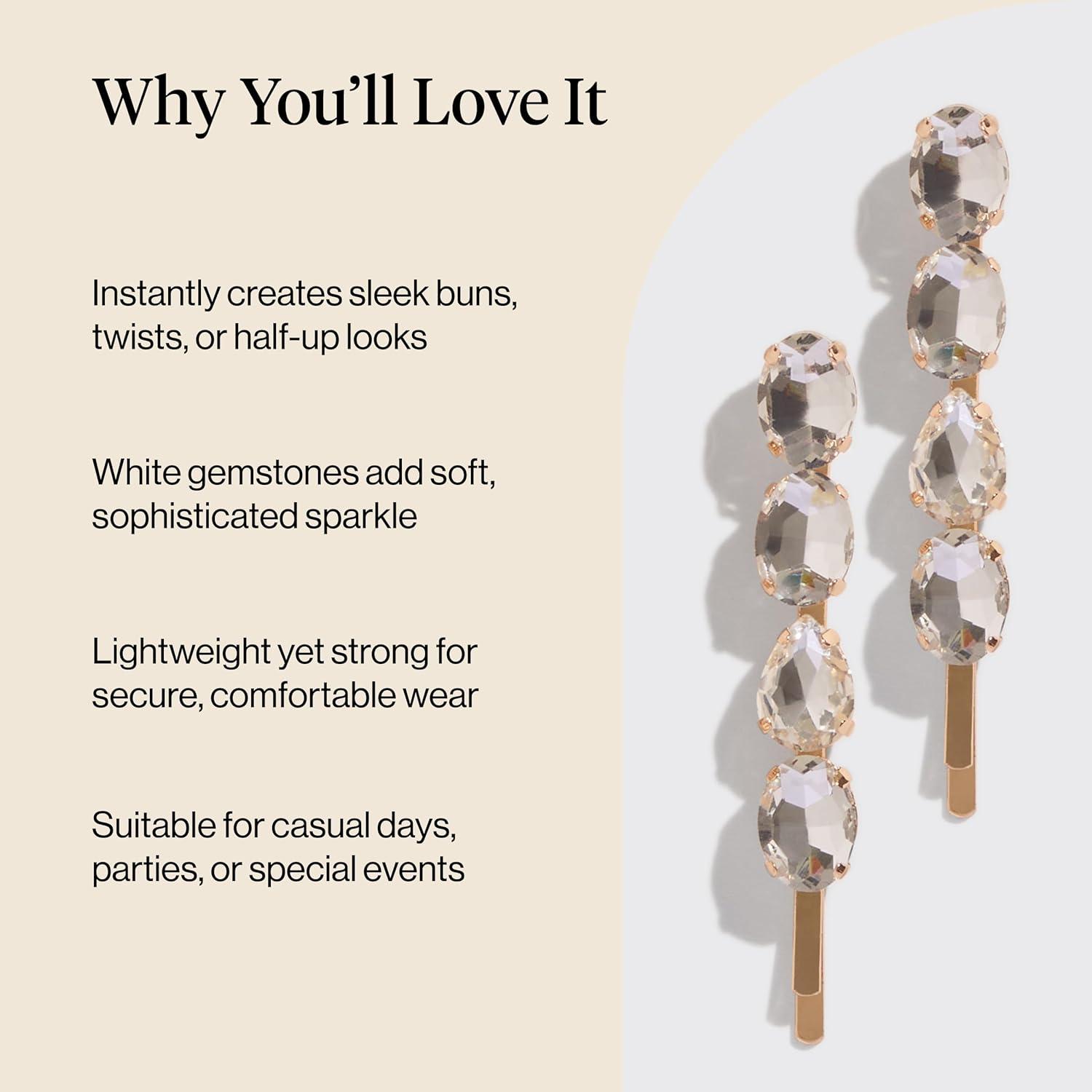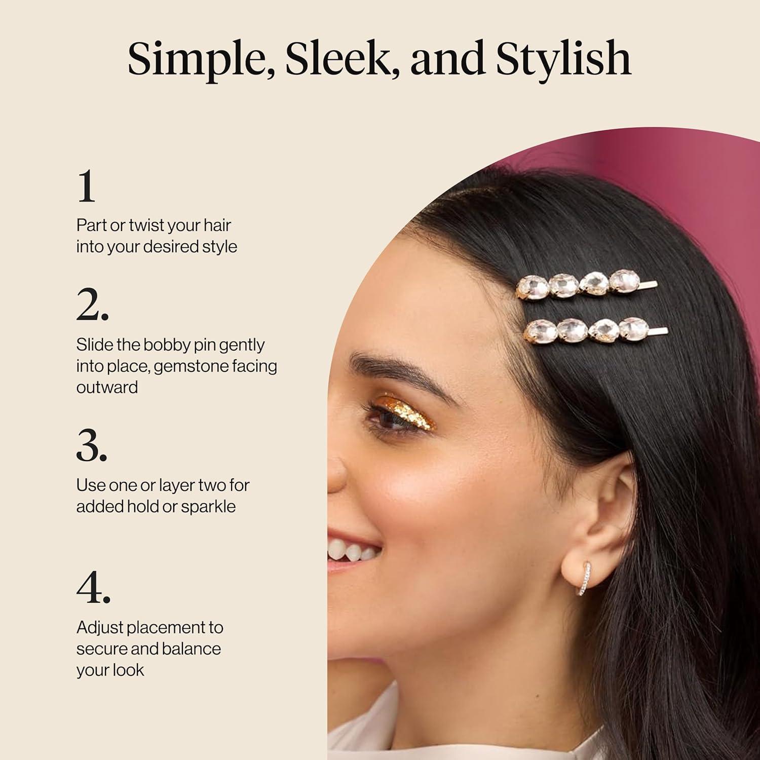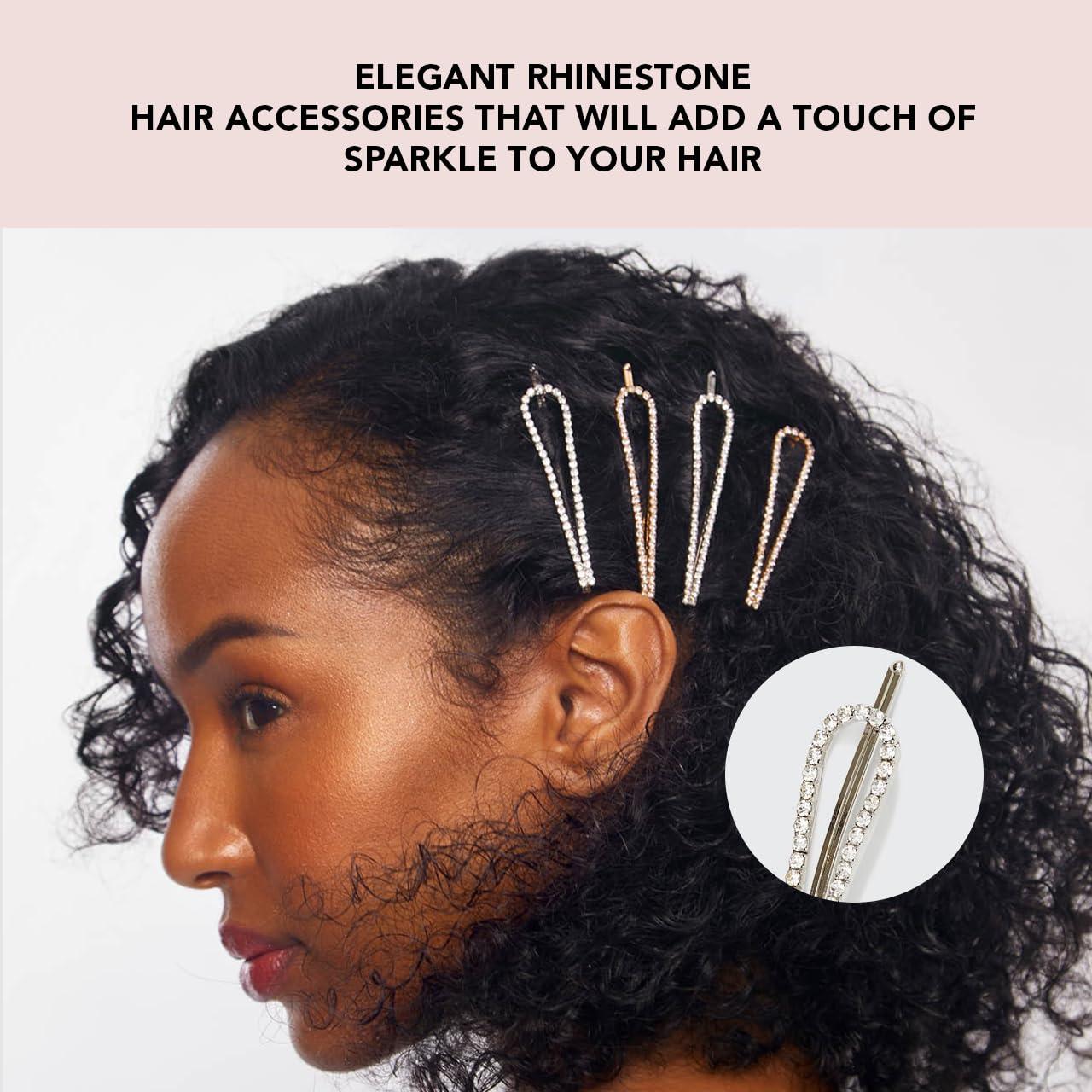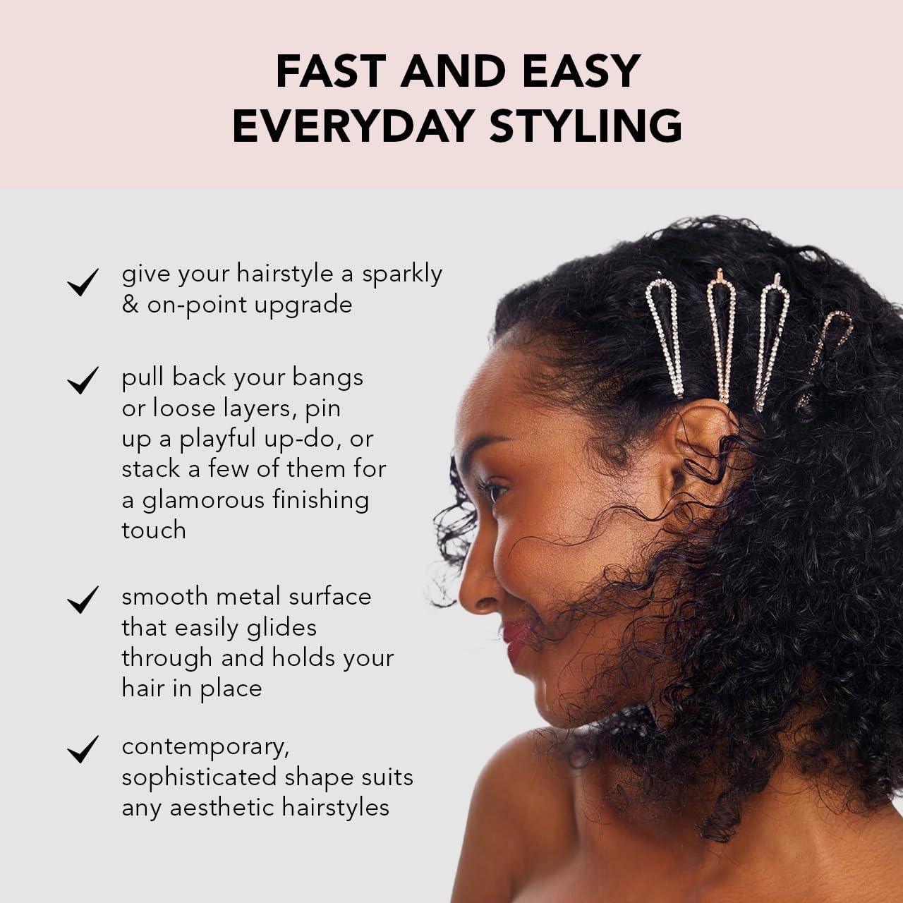 Kitsch Hair Clips for Women & Bobby Pins – Gold Metal Snap Hair Barrettes | Stylish, No Slip, Pain-Free | Ideal for Everyday Hairstyles | Ideal Gifts for Women – Sedona, 8pc Set(Rhinestone Teardrop Shape Gold and Silver)