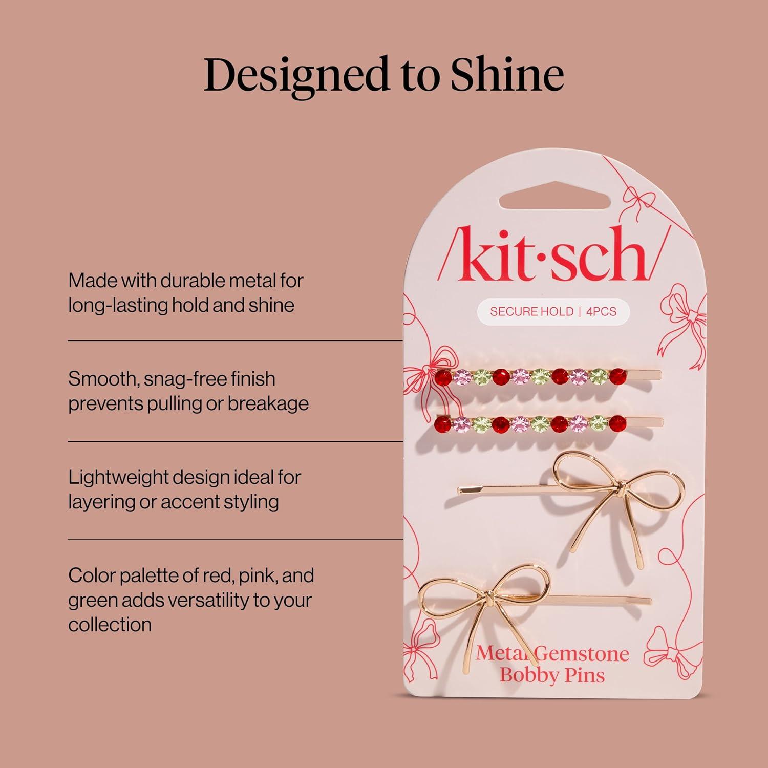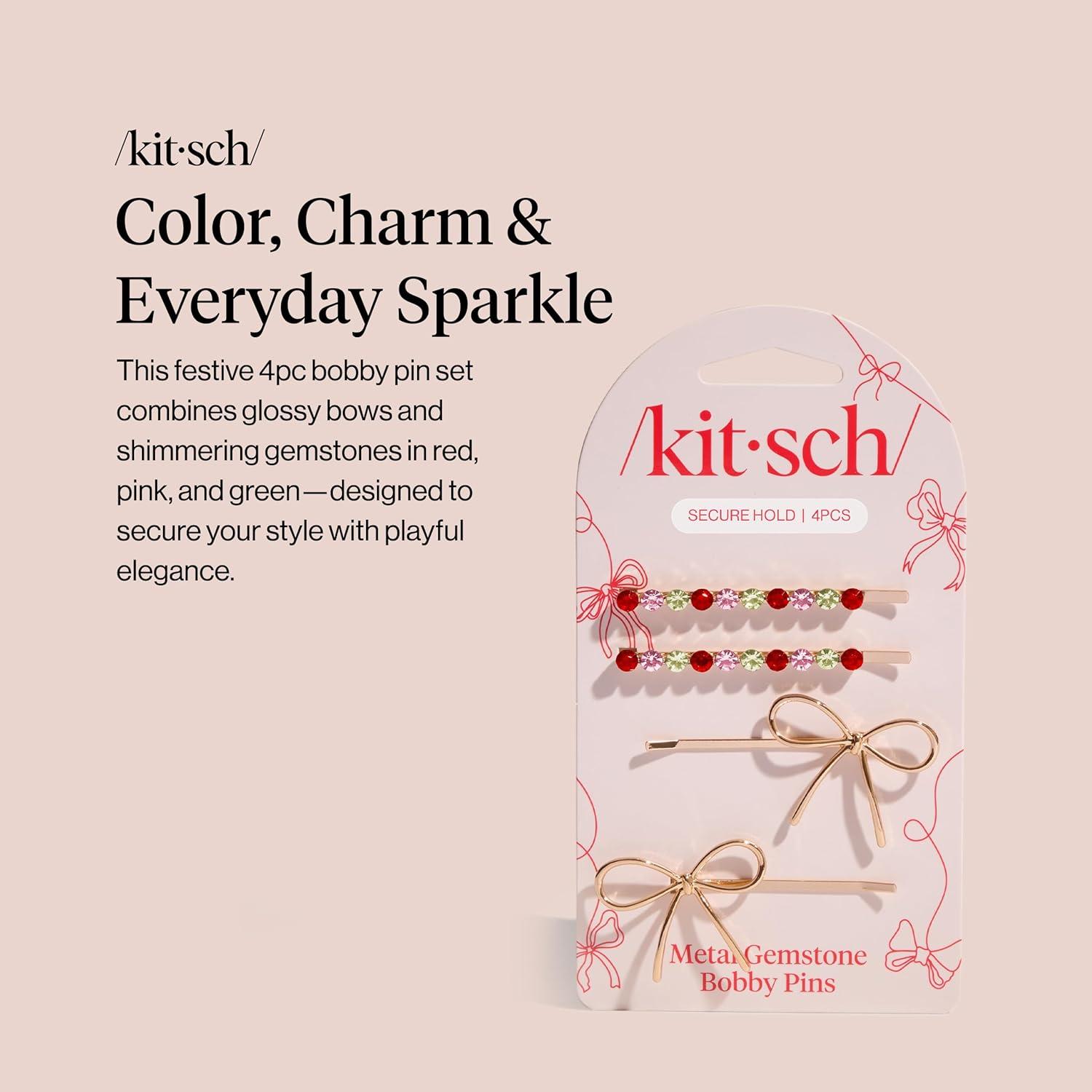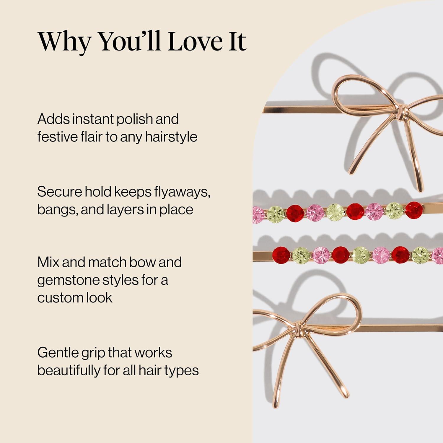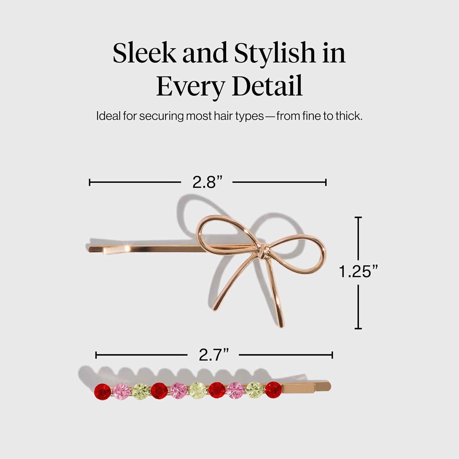 Kitsch Hair Clips for Women & Bobby Pins – Gold Metal Snap Hair Barrettes | Stylish, No Slip, Pain-Free | Ideal for Everyday Hairstyles | Ideal Gifts for Women – Sedona, 8pc Set(Red Pink & Green)