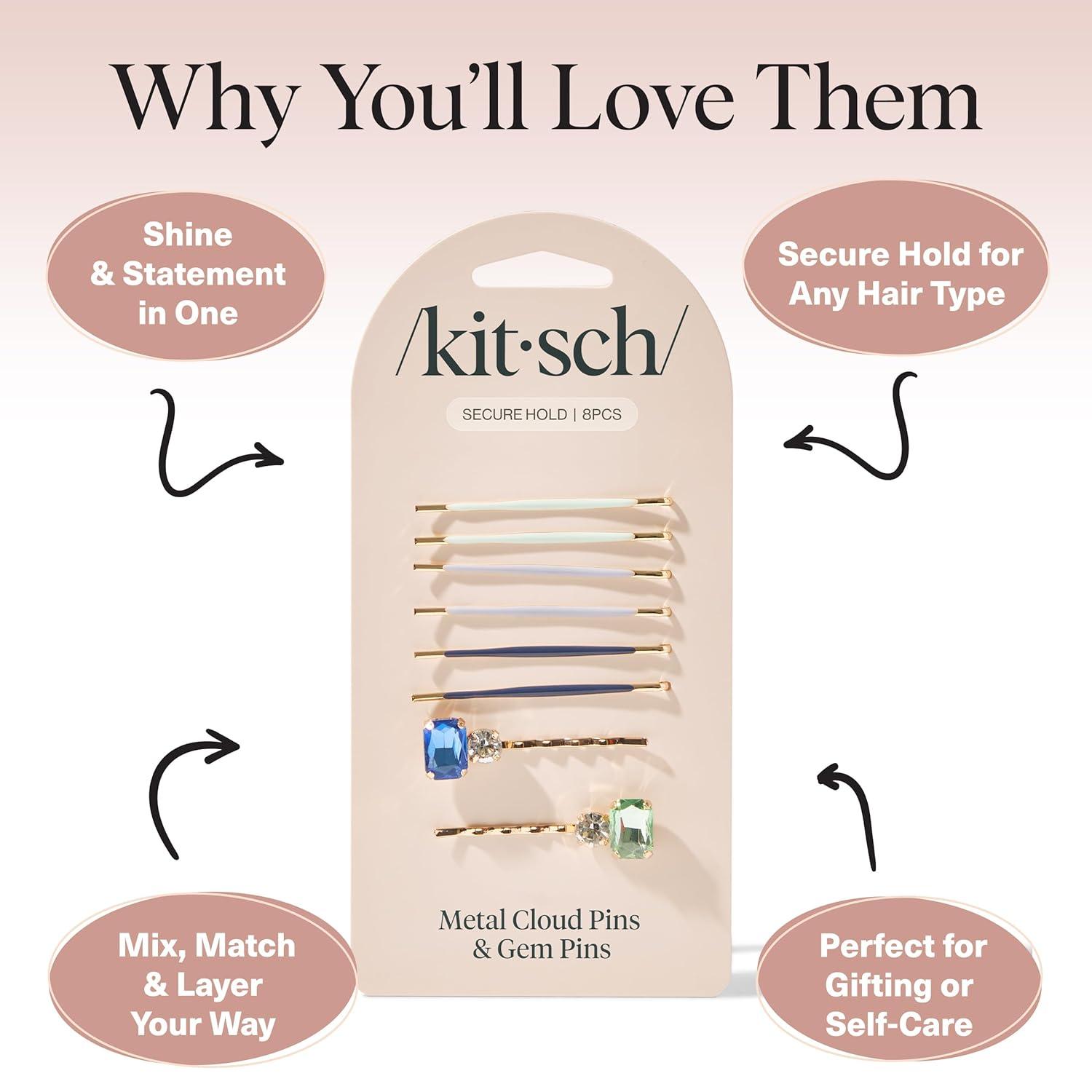 Kitsch Hair Clips for Women & Bobby Pins – Gold Metal Snap Hair Barrettes | Stylish, No Slip, Pain-Free | Ideal for Everyday Hairstyles | Ideal Gifts for Women – Sedona, 8pc Set(Ghost)