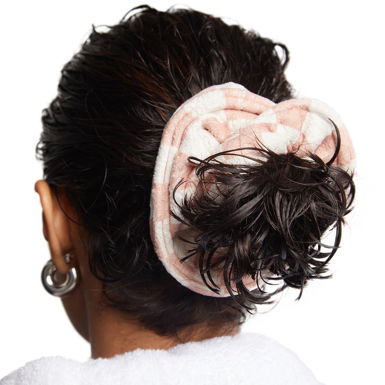Kitsch Microfiber Hair Towel Scrunchies – Soft and Highly Absorbent Microfiber Scrunchie for Women | Reduces Heat Drying Time | Ideal Gifts for Women – 2pcs (Micro Dot Design)(Terracotta Checkered)