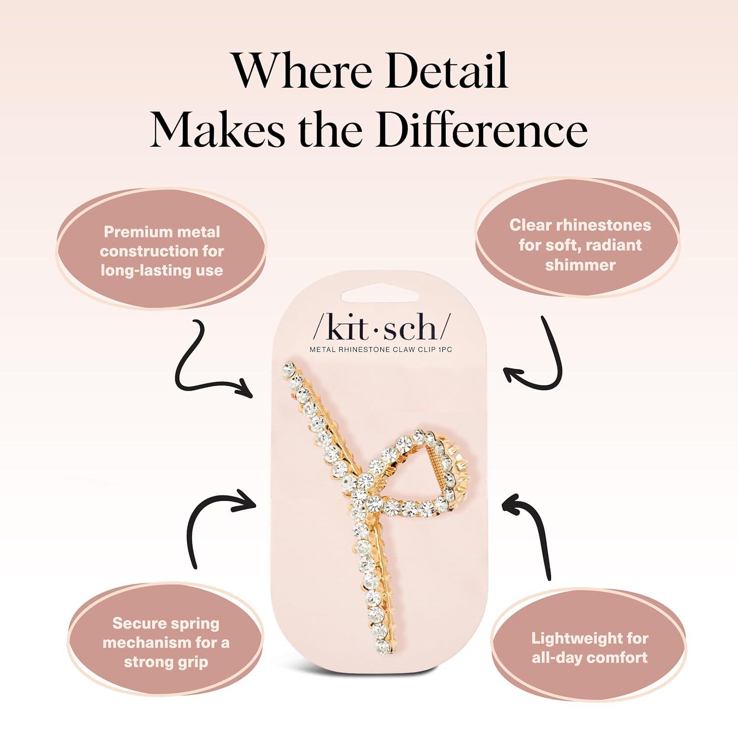 Kitsch Open Shape Metal Hair Clips for Women – Durable & Elegant Metal Claw Clips | Strong Hold for Updo and Half Up Styles | Ideal Gifts for Women – Hematite 1pc(Gold Rhinestone)