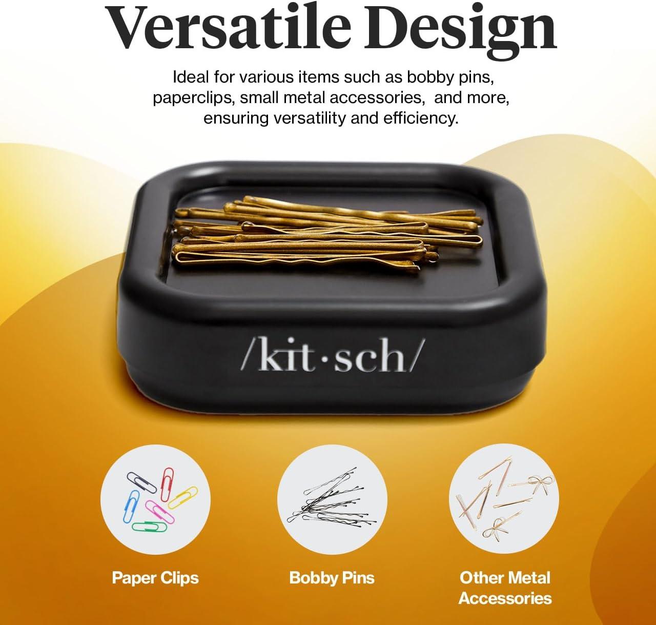 Kitsch Magnetic Bobby Pin Holder – Cute Stuff, Strong Magnetic Pin Holder for Desk & Vanity, Securely Holds Metal Hair Clips, Bobby Pins & Paper Clip | Ideal Gifts for Women – Black, 1 Pc