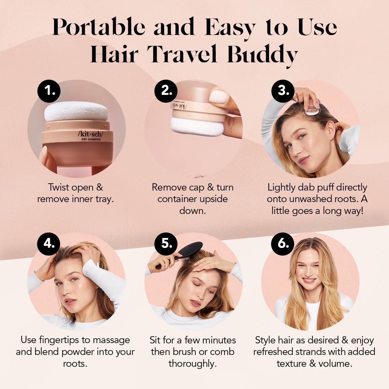Kitsch Dry Shampoo for Women | Texture Powder for Men – For Oily & Light Hair – Rice Protein, Unscented, No White Cast – Non Aerosol, Organic, Compact | Ideal Gifts for Women, Travel Size – 8g