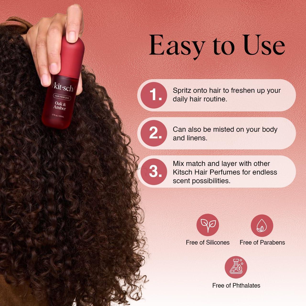 Kitsch Hair Perfume for Women – Pistachio Latte | Clean, Deodorizing & Patented Odor-Eliminating Technology Hair Spray & Body Mist – Freshen Hair, Body & Pillows – Coconut & Warm Coffee Scent – 50mL(Oak & Amber)