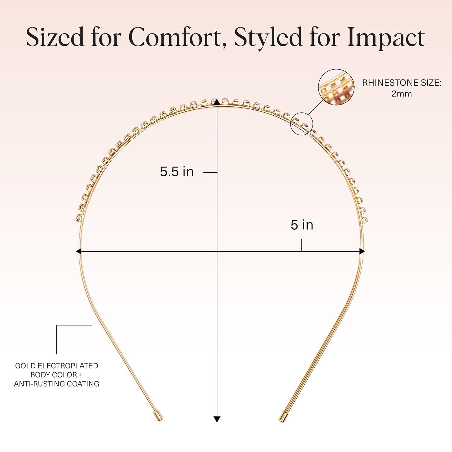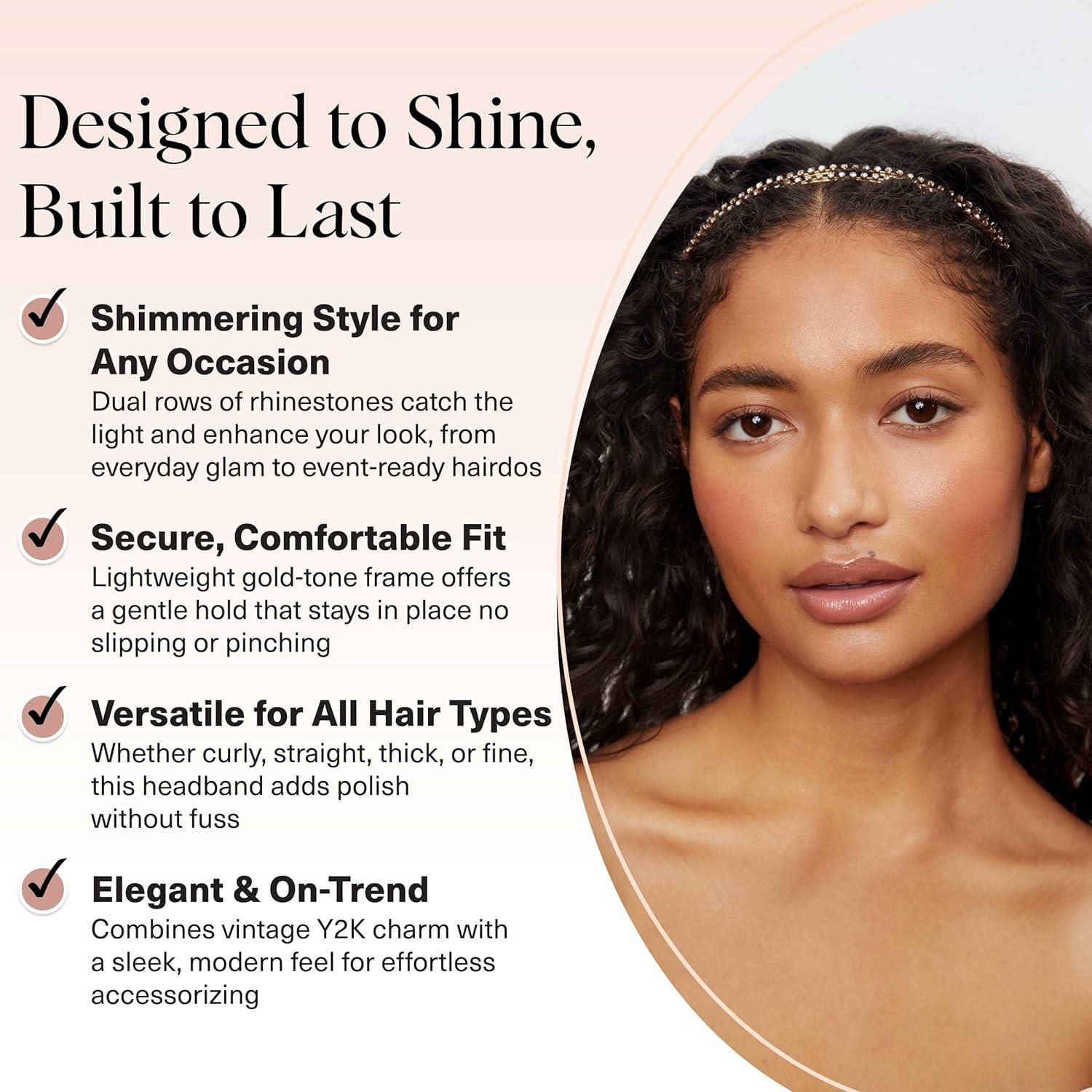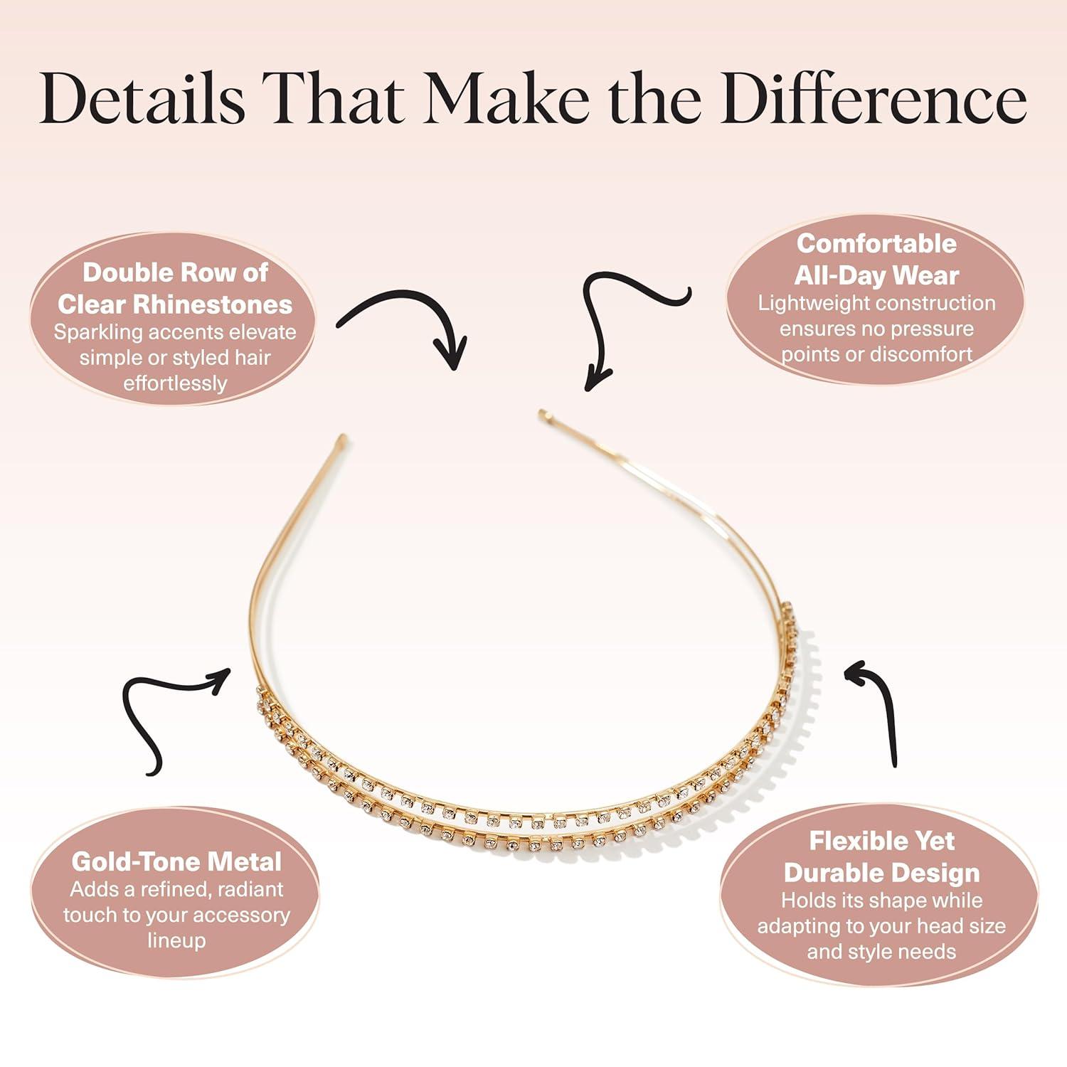 Kitsch Rhinestone Headband for Women – Double Row Gold Headband for Bridal Accessories – Hair Jewelry for Wedding, Prom, Birthday, or Special Occasions | Ideal Gifts for Women – 1pc(Gold)