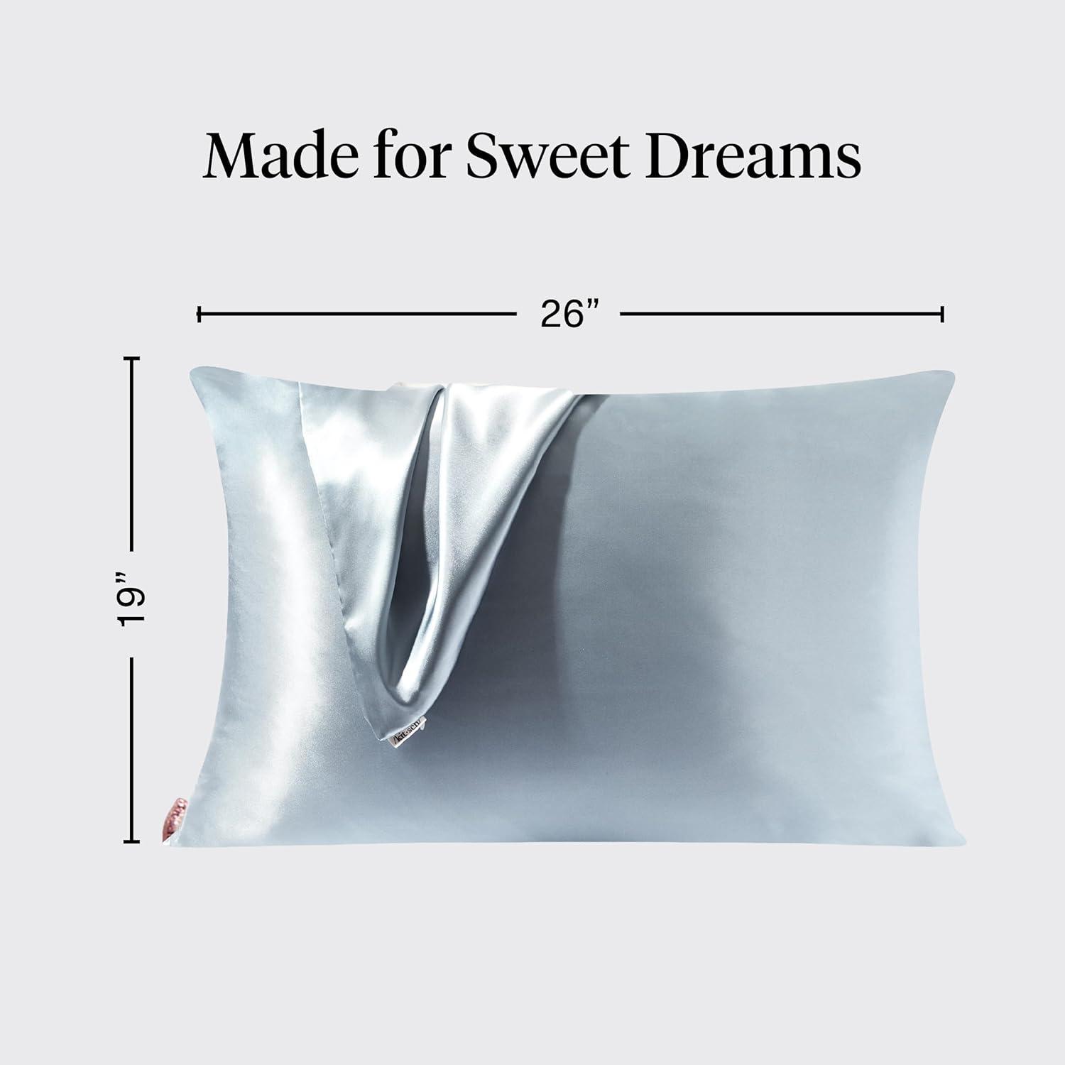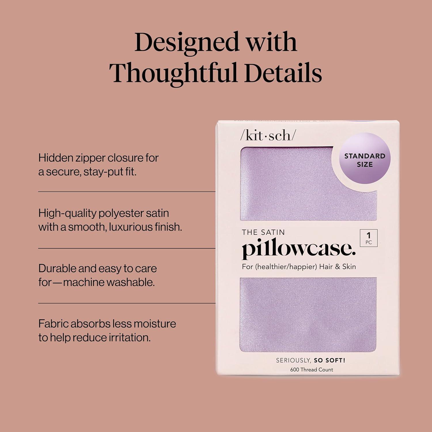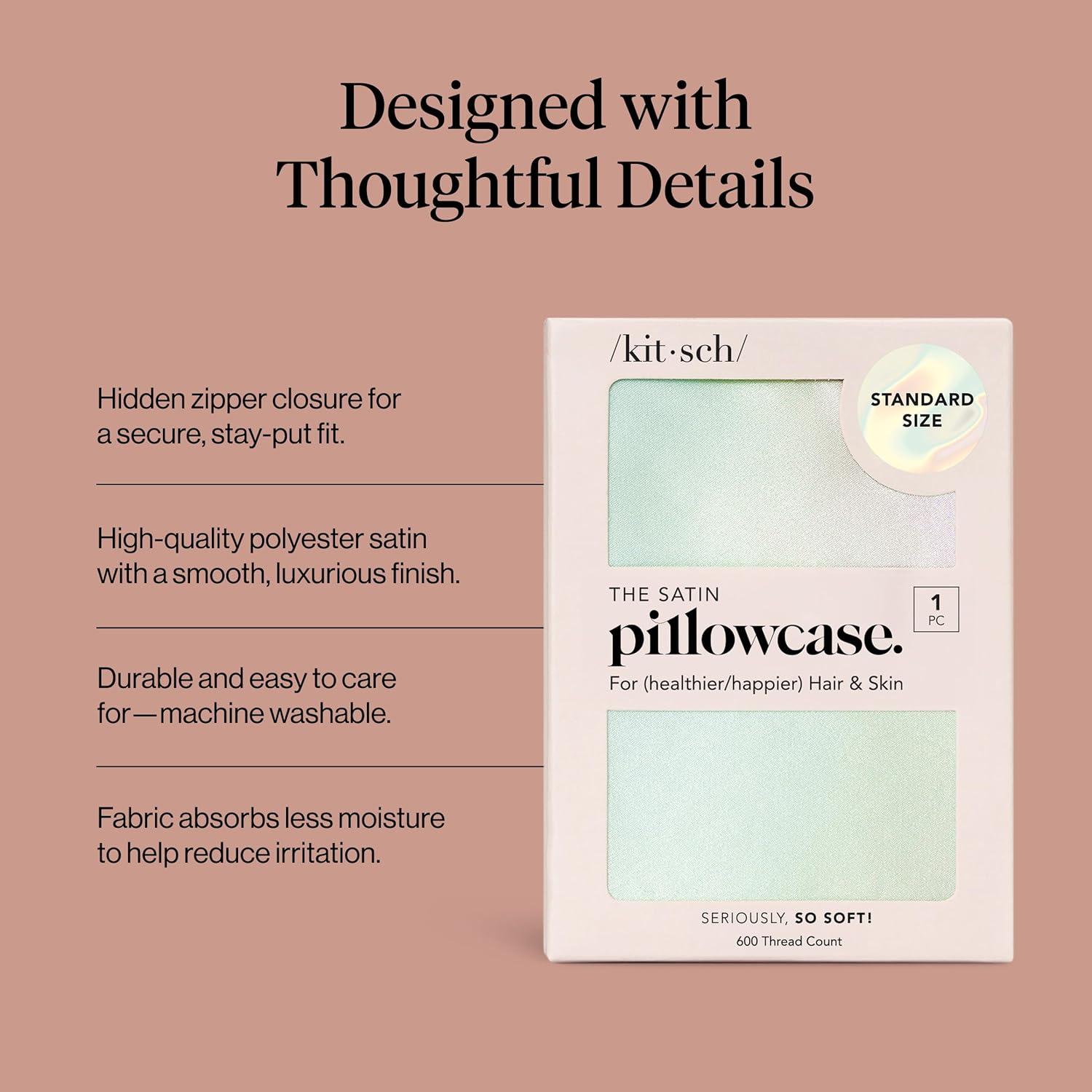Kitsch Satin Pillowcase with Zipper for Hair & Skin, Softer Than Silk Pillow Cases Queen, Wrinkle-Free, Smooth and Cooling Satin Pillow Covers, Standard Size 19″x26″ – Aura