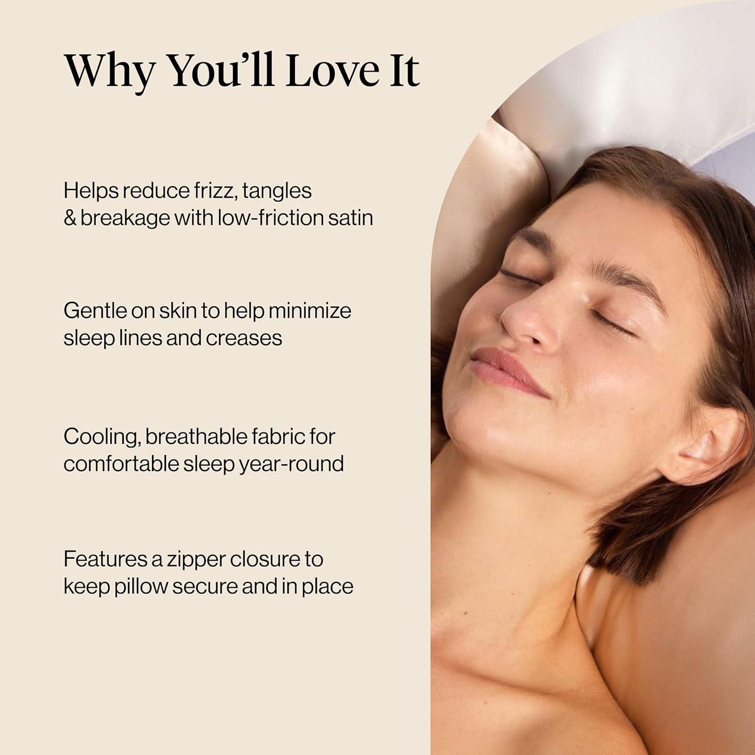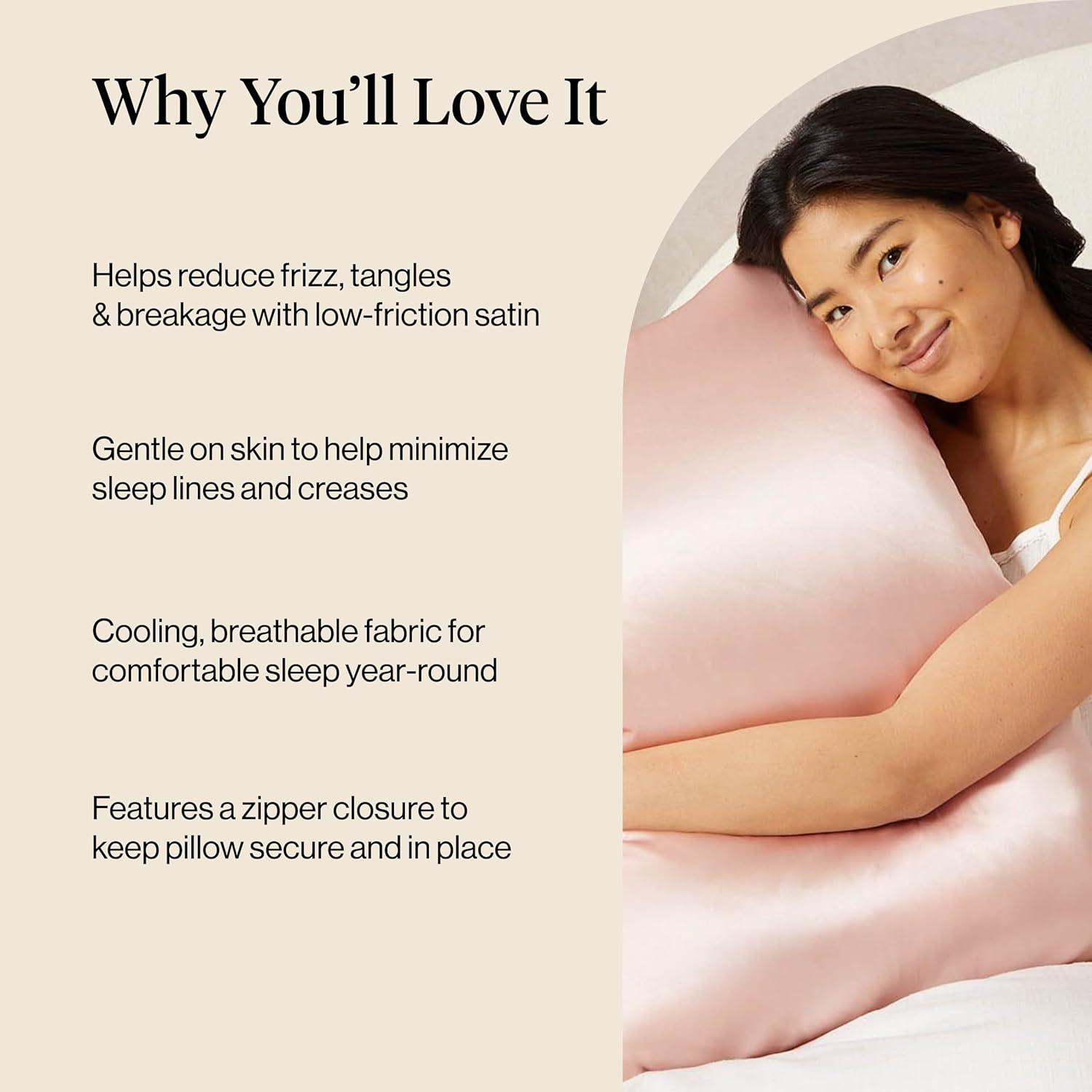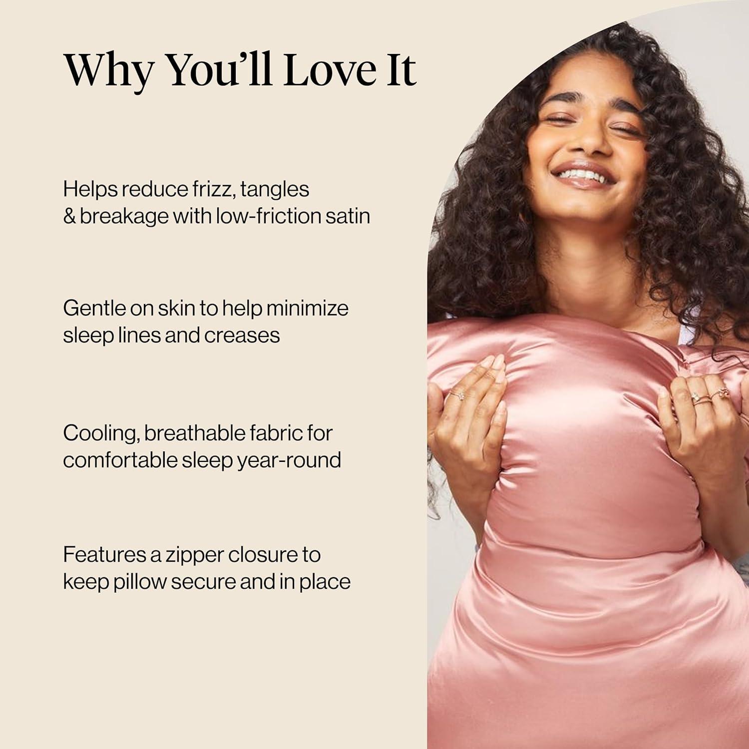 Kitsch Satin Pillowcase with Zipper for Hair & Skin, Softer Than Silk Pillow Cases Queen, Wrinkle-Free, Smooth and Cooling Satin Pillow Covers, Standard Size 19″x26″ – Aura