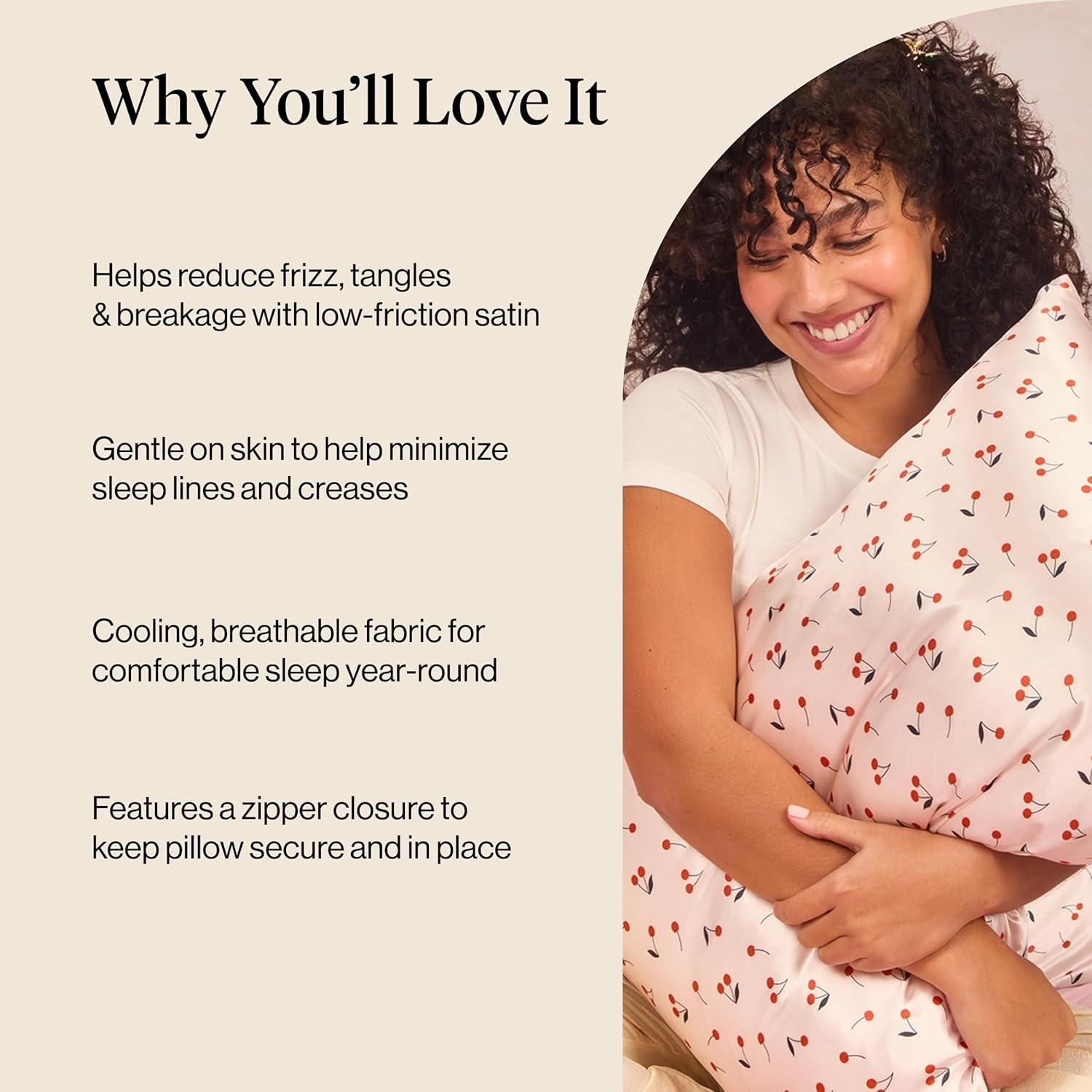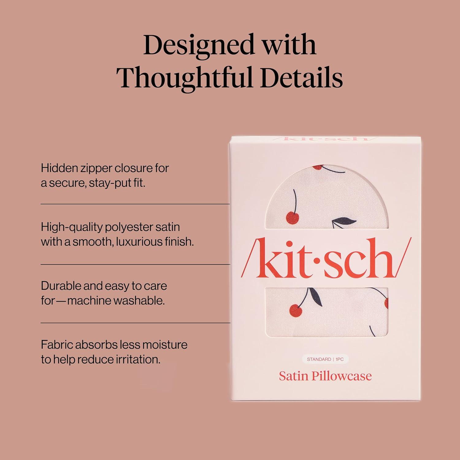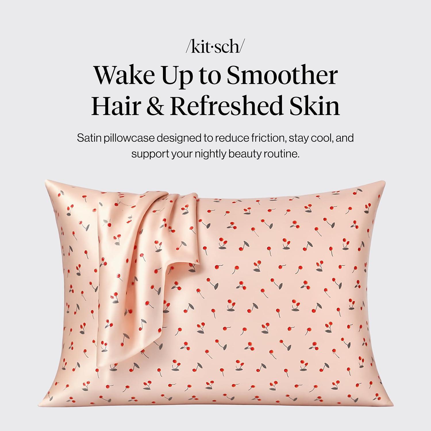 Kitsch Satin Pillowcase, Softer Than Silk Pillow Cases, Cooling Pillow Covers, King Size Pillow Cases Set of 2, Satin Pillowcase with Zipper for Hair, Skin & Quality Sleep, 19″x36″ Blush, 2pcs(Cherry Print)