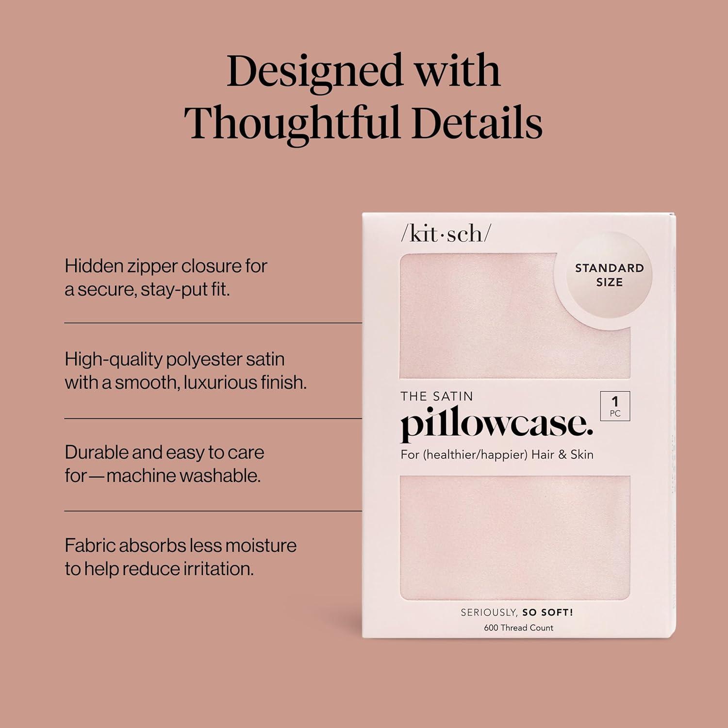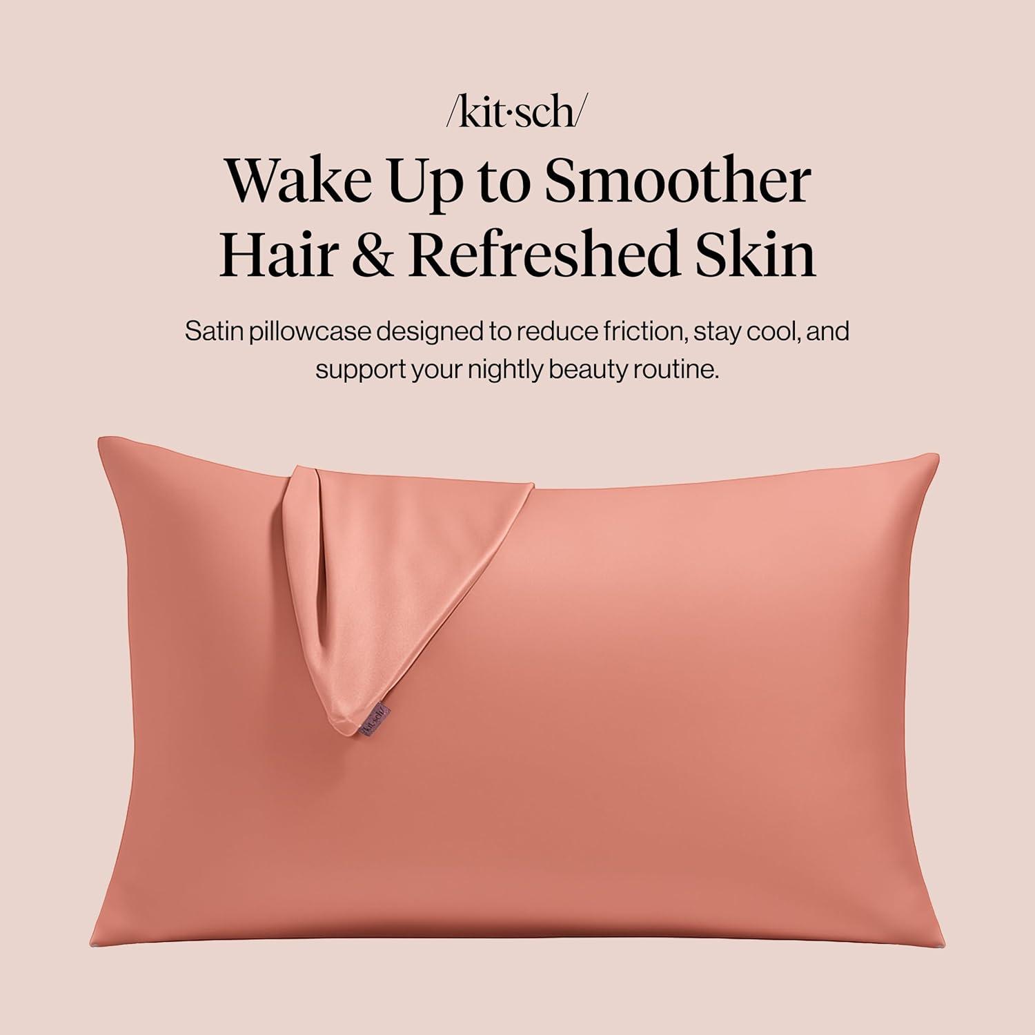 Kitsch Satin Pillowcase, Softer Than Silk Pillow Cases, Cooling Pillow Covers, King Size Pillow Cases Set of 2, Satin Pillowcase with Zipper for Hair, Skin & Quality Sleep, 19″x36″ Blush, 2pcs(Blush)