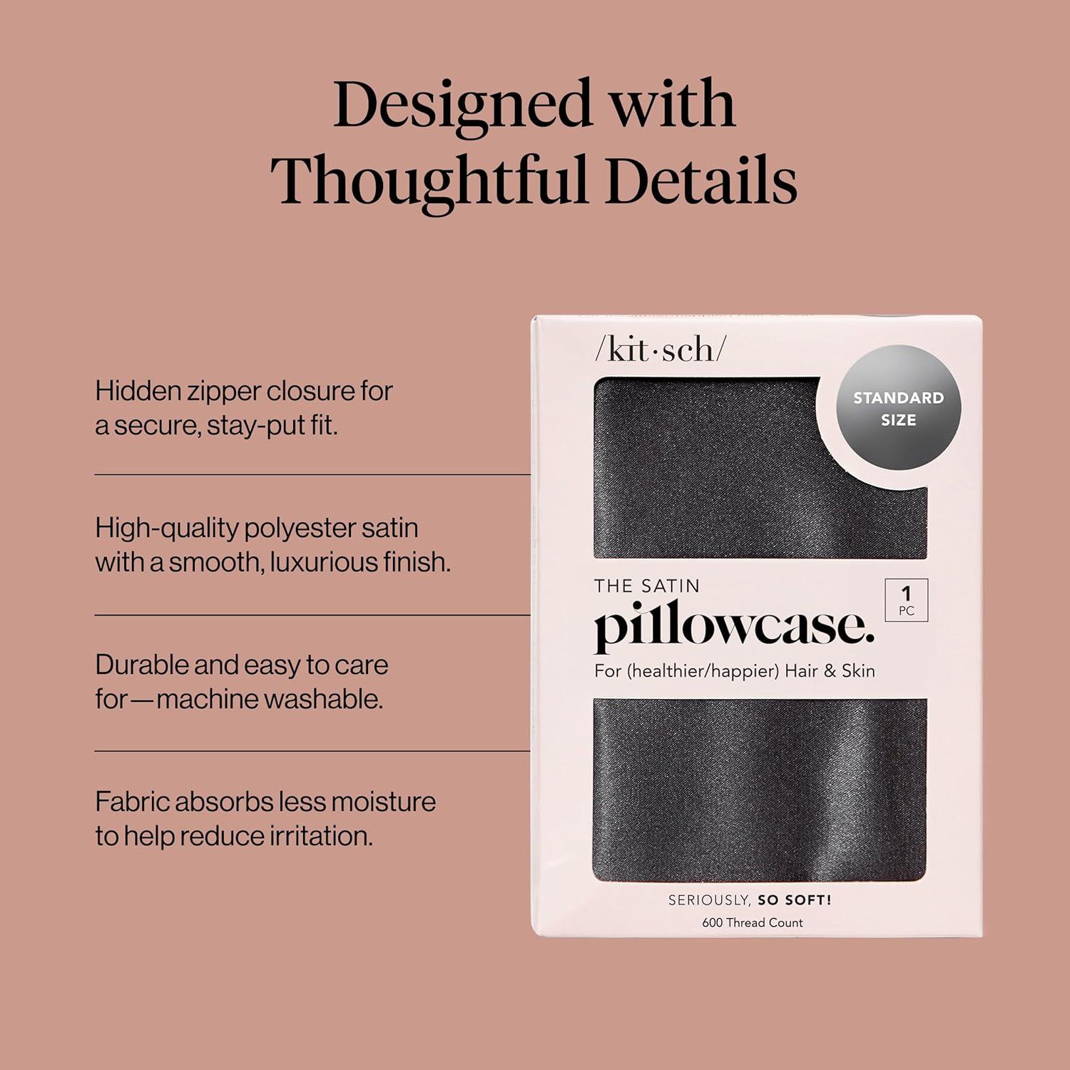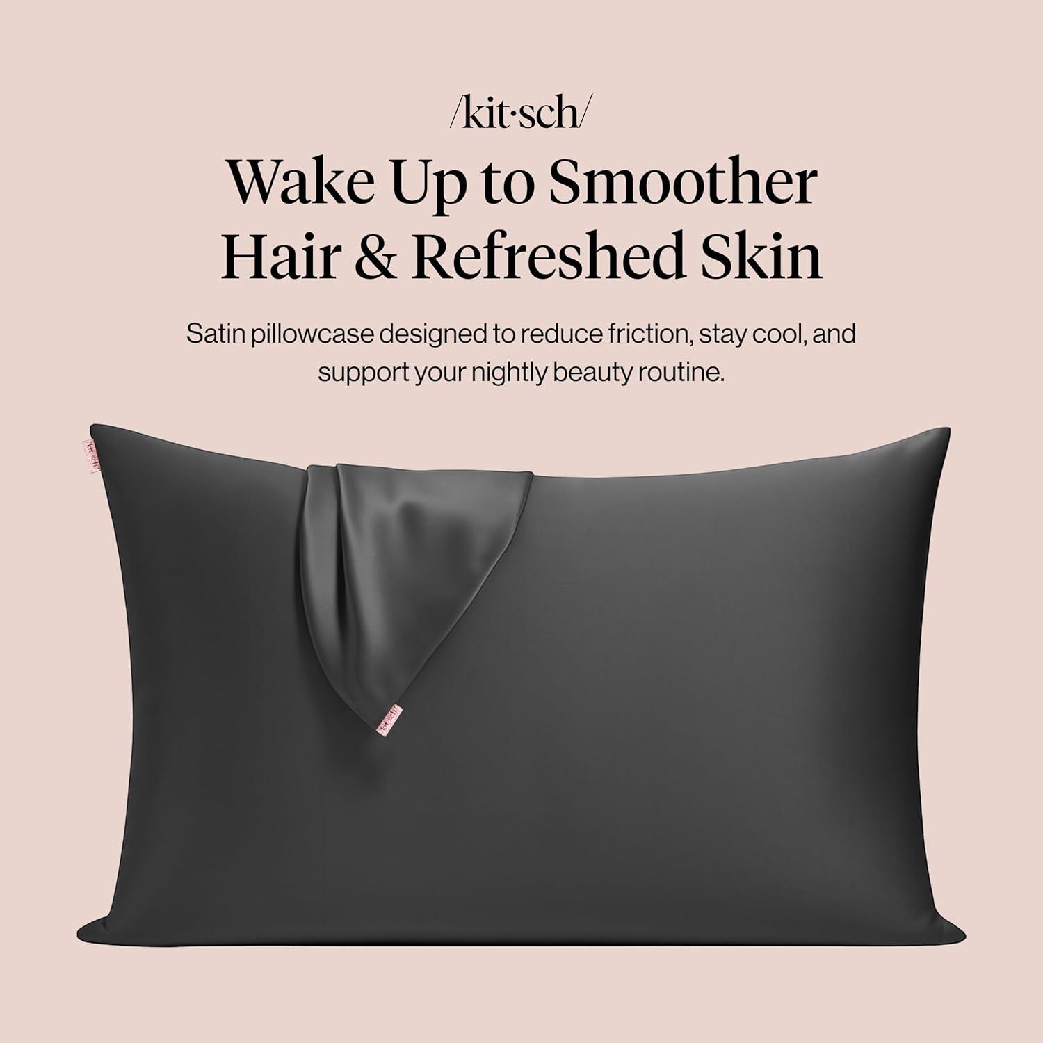 Kitsch Satin Pillowcase, Softer Than Silk Pillow Cases, Cooling Pillow Covers, King Size Pillow Cases Set of 2, Satin Pillowcase with Zipper for Hair, Skin & Quality Sleep, 19″x36″ Blush, 2pcs(Charcoal)
