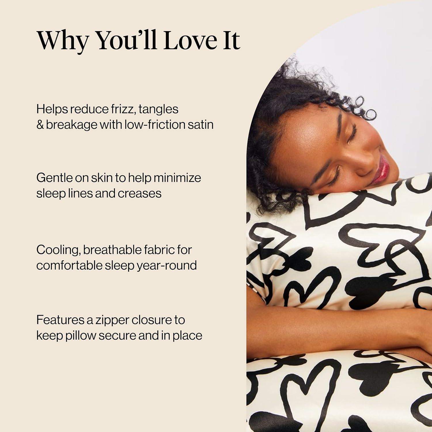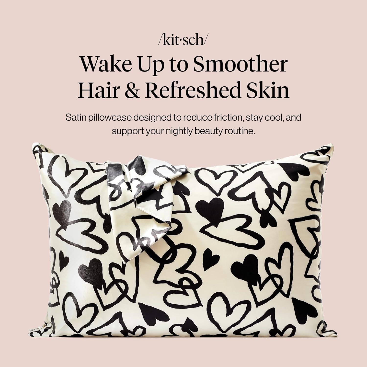 Kitsch Satin Pillowcase, Softer Than Silk Pillow Cases, Cooling Pillow Covers, King Size Pillow Cases Set of 2, Satin Pillowcase with Zipper for Hair, Skin & Quality Sleep, 19″x36″ Blush, 2pcs(Heart)