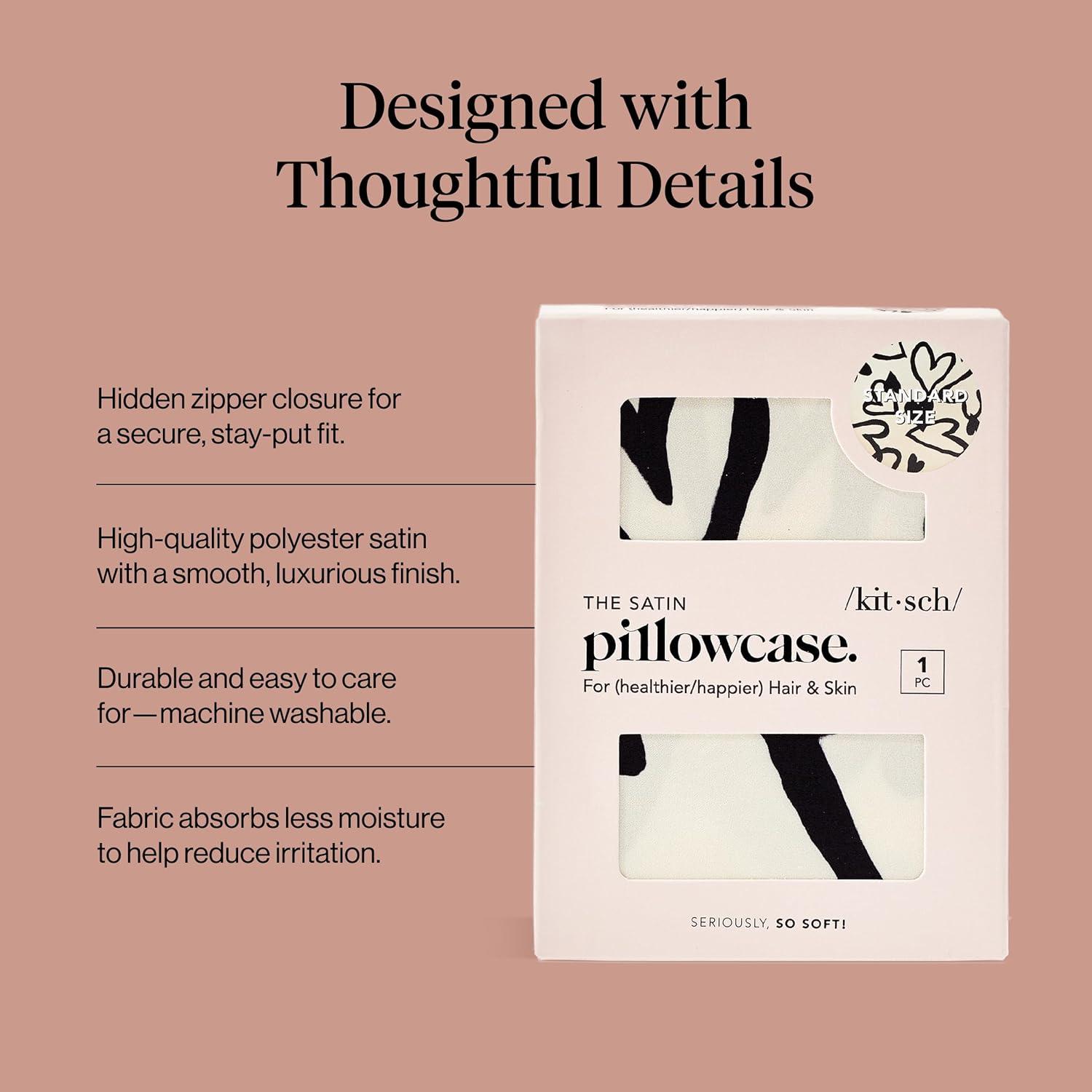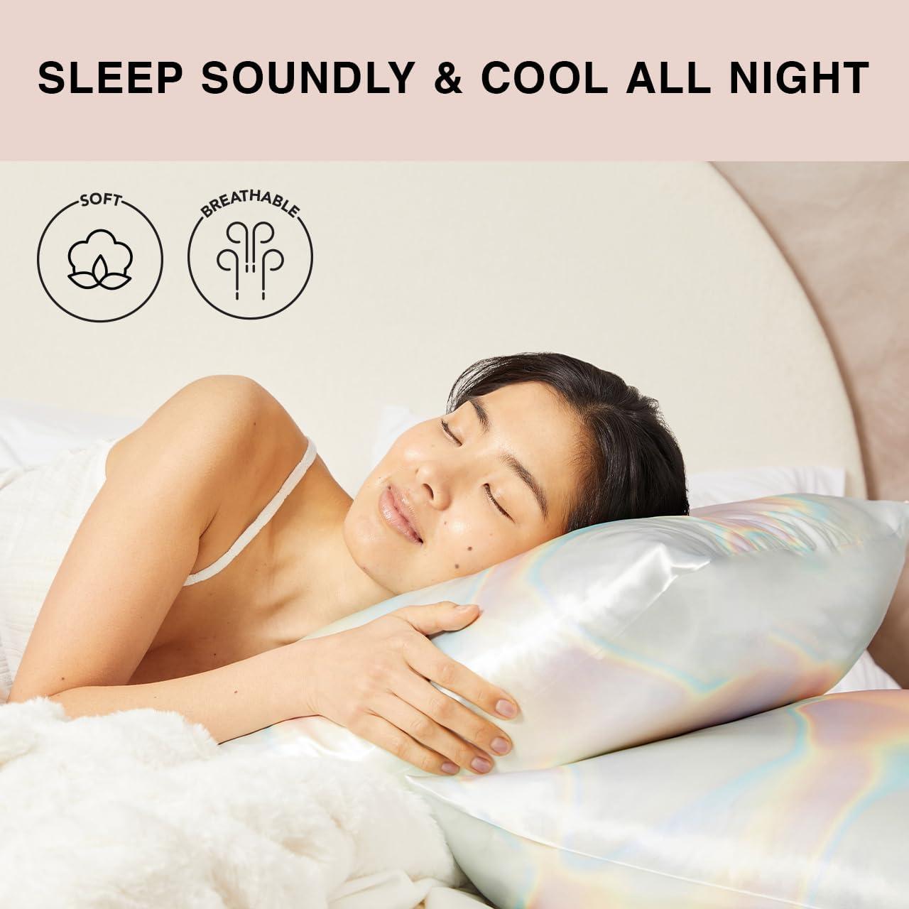 Kitsch Satin Pillowcase with Zipper for Hair & Skin – Softer Than Silk, Machine Washable, Wrinkle-Free – Queen/Standard (19×26) with Satin Scrunchie No-Damage Silk Hair Tie – Aura(Holiday Aura)