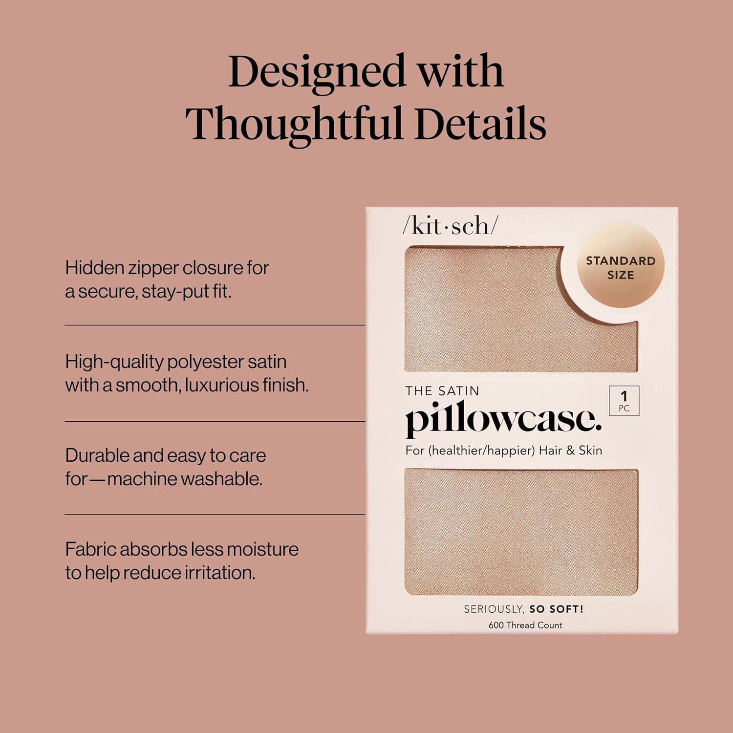 Kitsch Satin Pillowcase, Softer Than Silk Pillow Cases, Cooling Pillow Covers, King Size Pillow Cases Set of 2, Satin Pillowcase with Zipper for Hair, Skin & Quality Sleep, 19″x36″ Blush, 2pcs(Champagne)