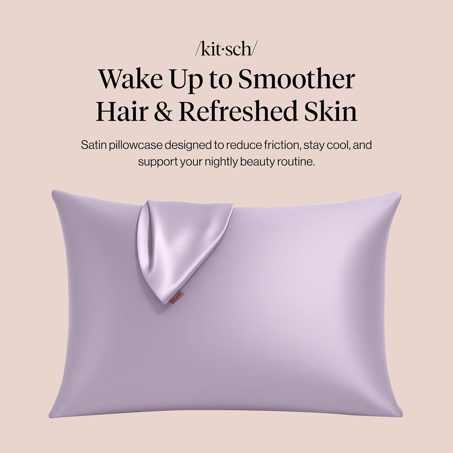 Kitsch Satin Pillowcase, Softer Than Silk Pillow Cases, Cooling Pillow Covers, King Size Pillow Cases Set of 2, Satin Pillowcase with Zipper for Hair, Skin & Quality Sleep, 19″x36″ Blush, 2pcs(Lavender)