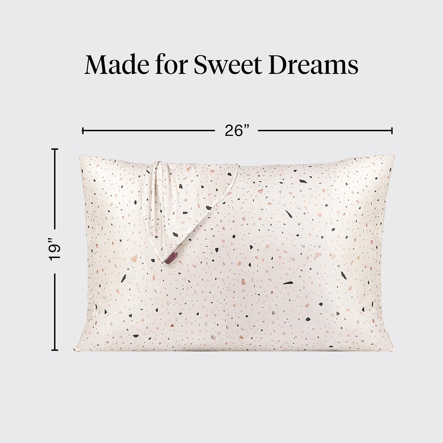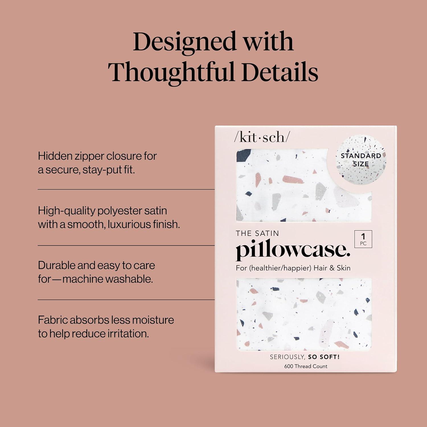 Kitsch Holiday Satin Pillowcase with Zipper for Hair and Skin – Softer Than Silk Pillow Cases, Cooling Pillow Covers, Machine Washable, Wrinkle-Free – Queen/Standard (19×26) – Ivory, 2pcs(White Terrazzo)