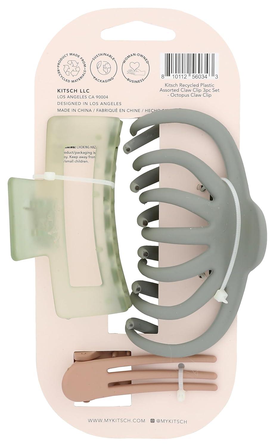 Kitsch Large Assorted Hair Clips for Women, Medium Open Shape Hair Claw Clips for Thick Hair, Flat Lay Hair Clip & Big Octopus Claw Clip for Teen Girls | Ideal Gifts for Women, 3 pcs(Sage)