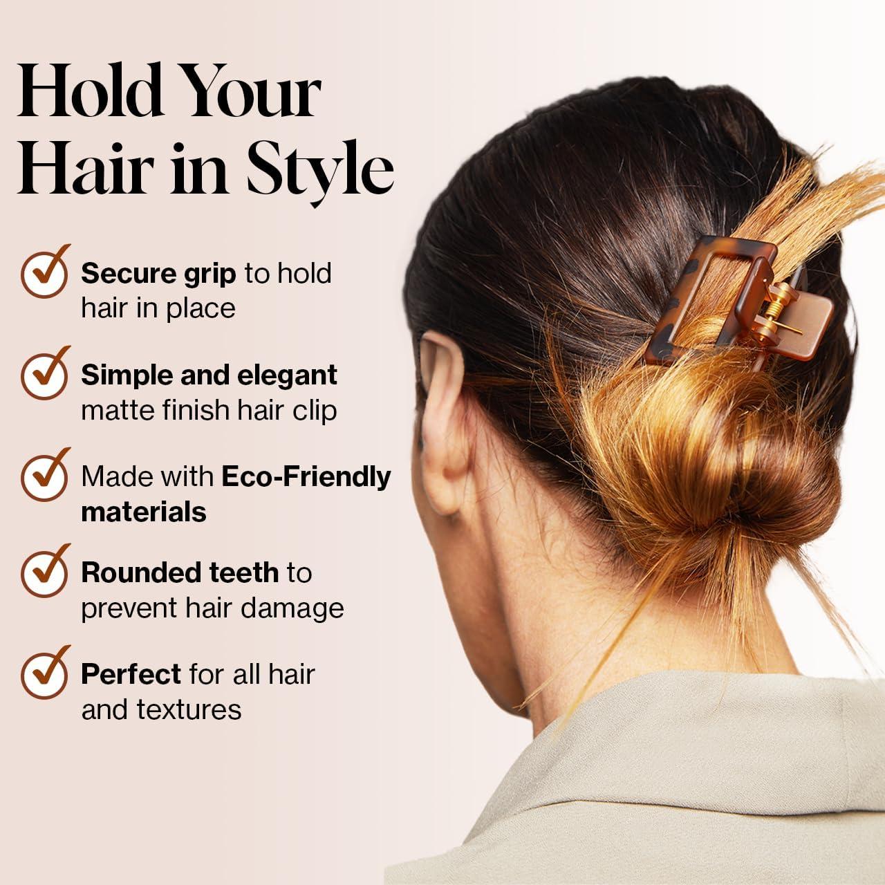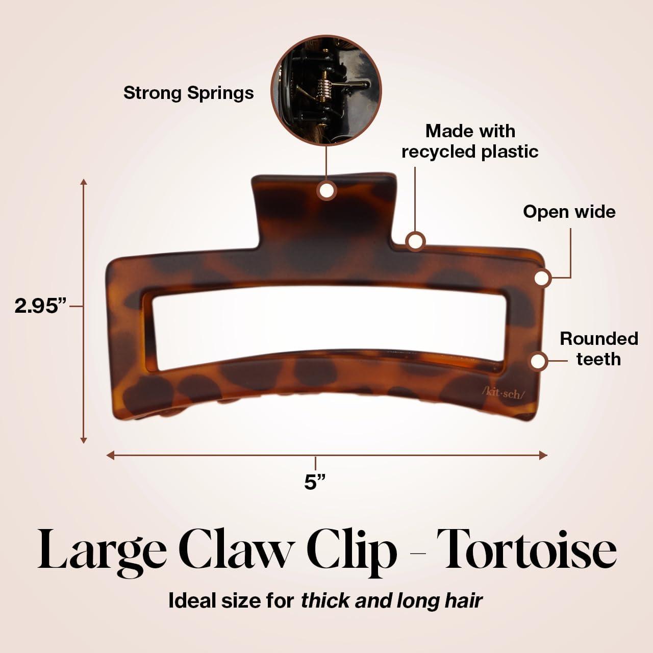 Kitsch Large Assorted Hair Clips for Women, Medium Open Shape Hair Claw Clips for Thick Hair, Flat Lay Hair Clip & Big Octopus Claw Clip for Teen Girls | Ideal Gifts for Women, 3 pcs(Black & Tortoise Rectangle)