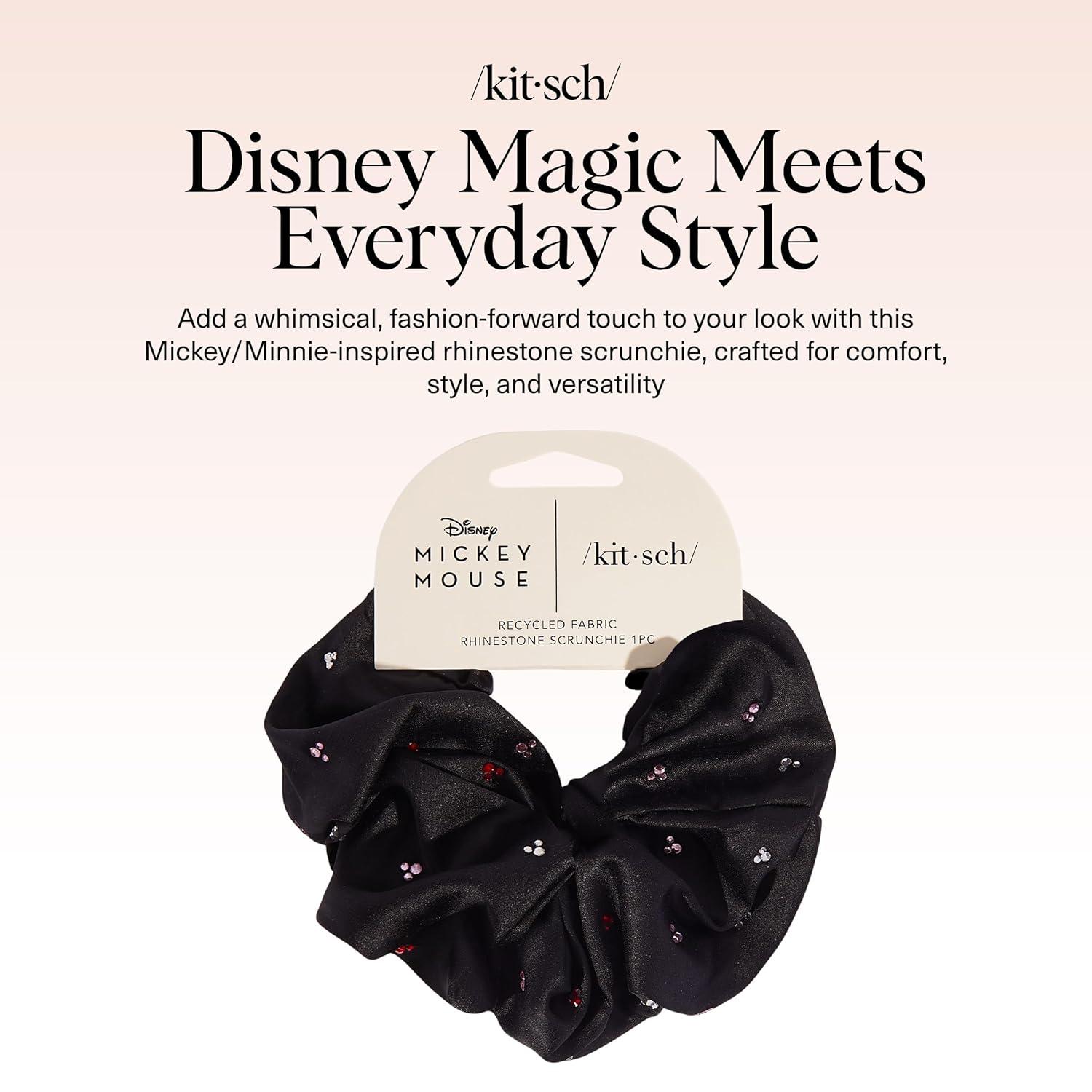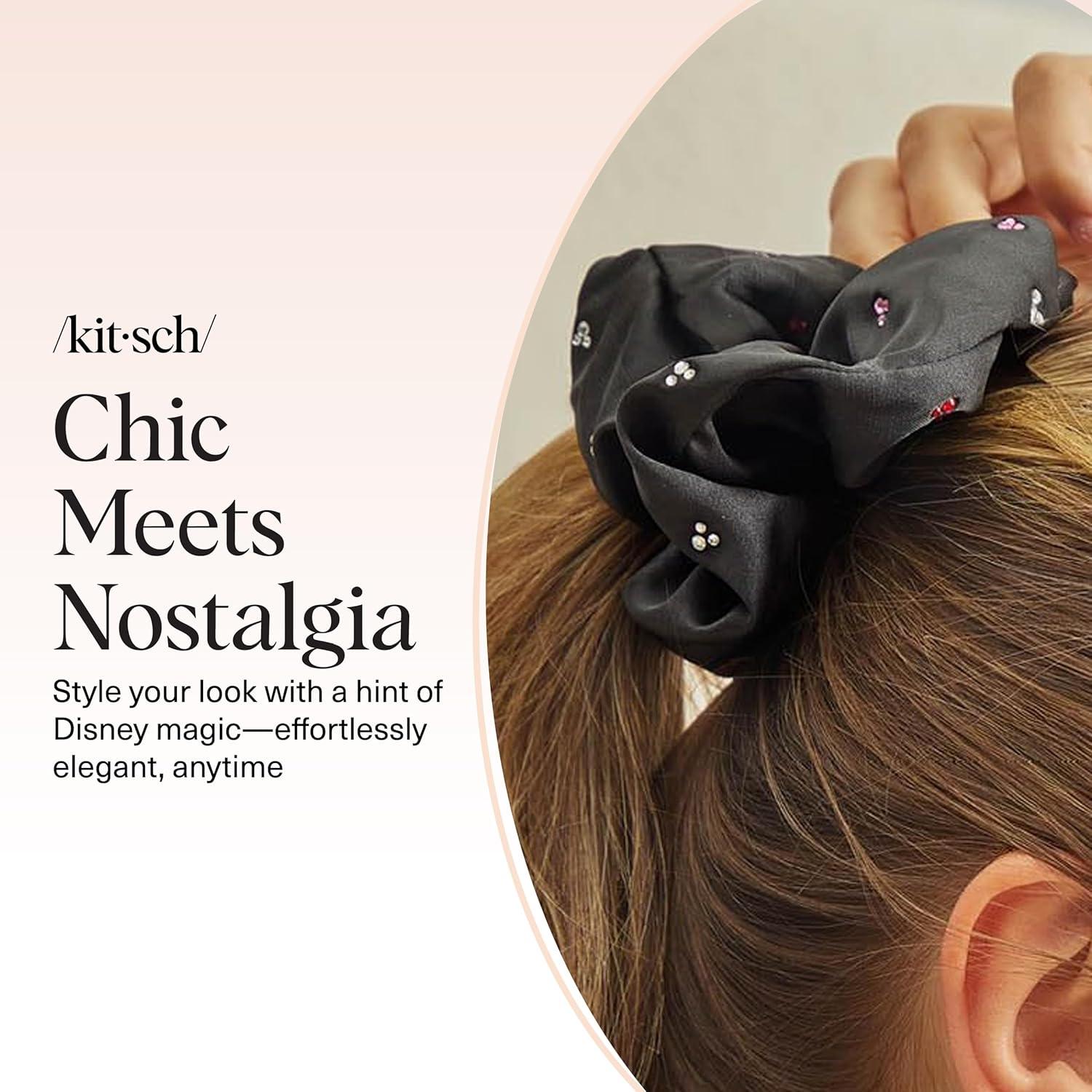 Bridgerton x Kitsch Satin Scrunchies for Women, No Snag, No Tugging, Soft & Comfortable Scrunchies for Girls, Perfect for Day or Night | Ideal Gifts for Women – Toile De Blue, 2pcs(Mickey/Minnie Black Rhinestone)
