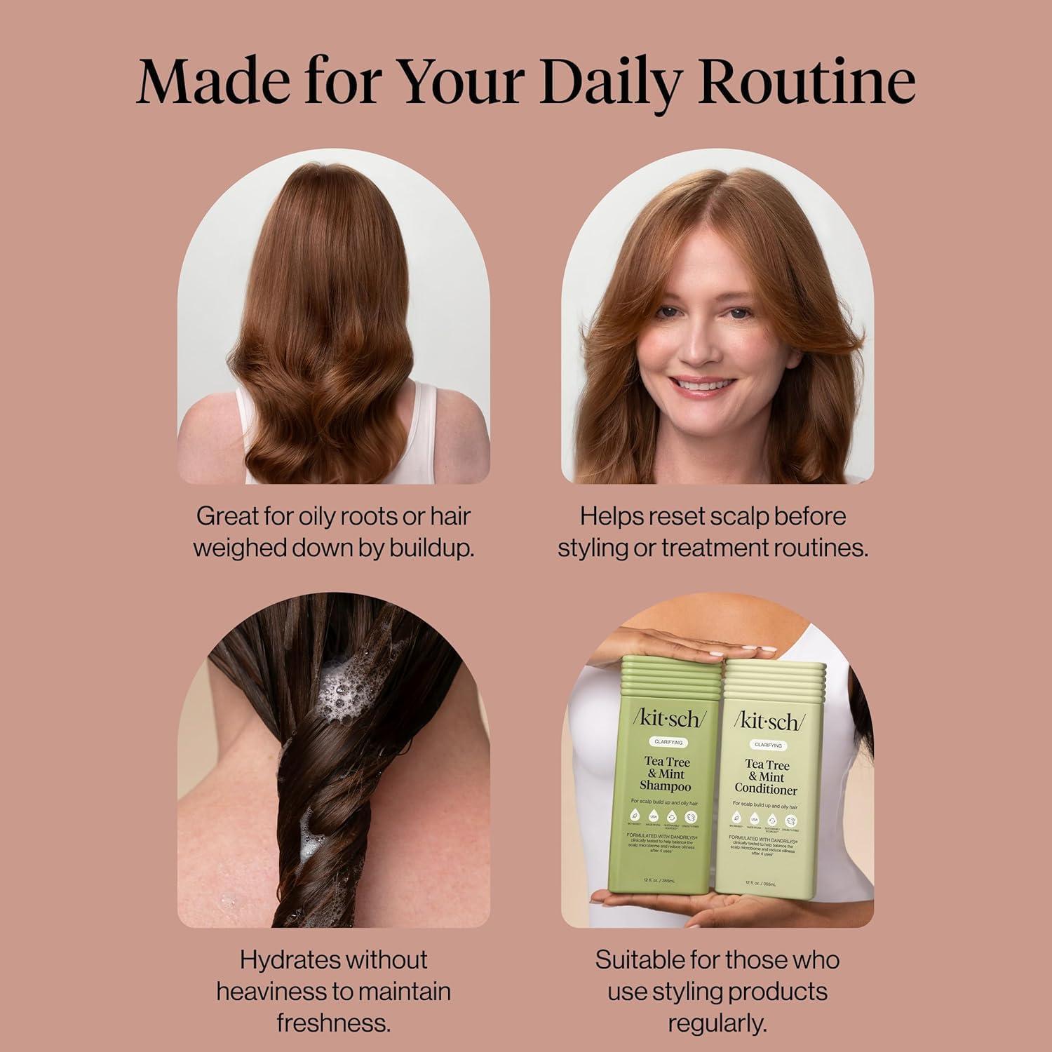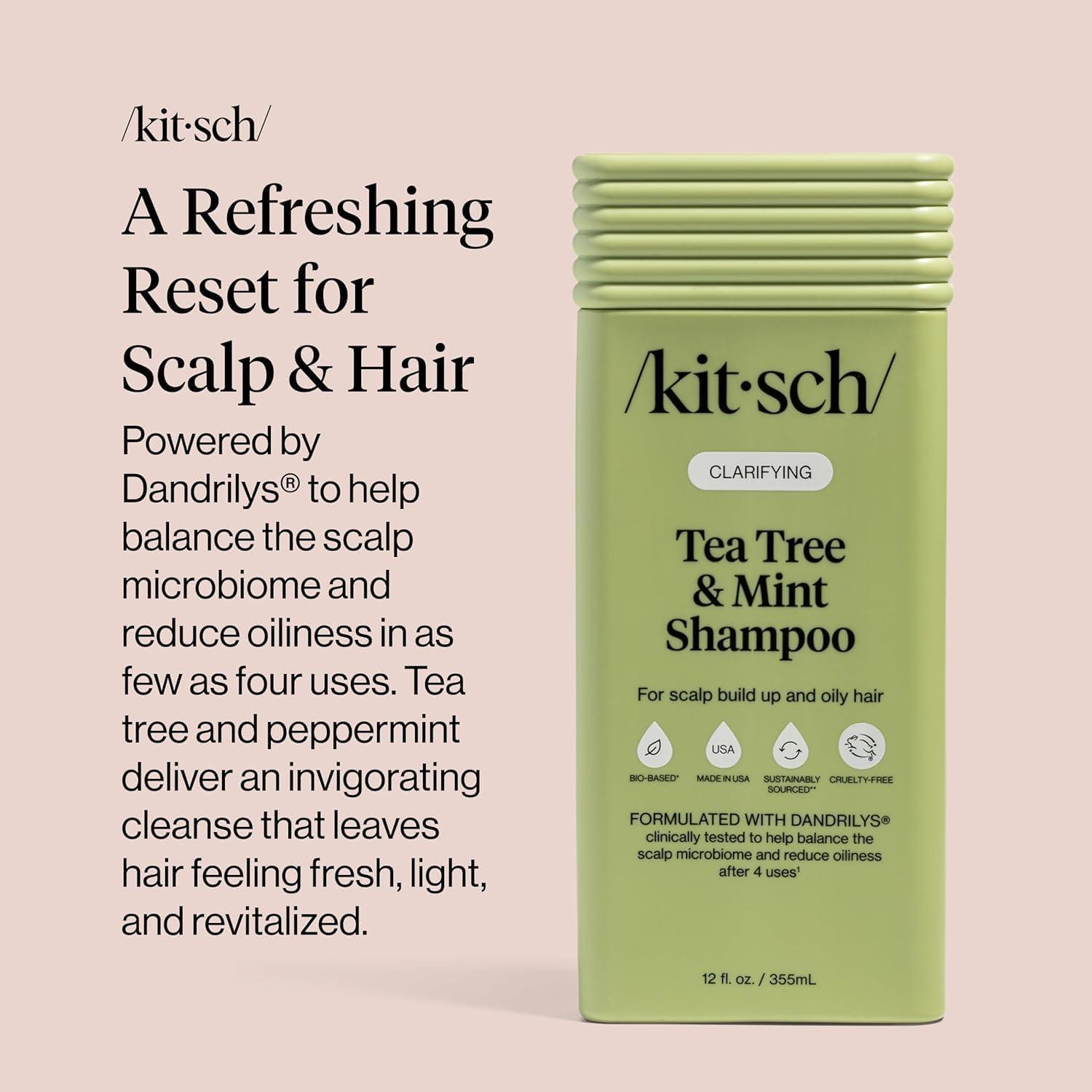 Kitsch Clarifying Tea Tree & Mint Liquid Shampoo for Men and Women – Clarifying Shampoo with Peppermint & Tea Tree Oil for Oily Hair & Scalp Buildup – Clean Color-Safe Hair Care, Made in USA – 12 oz