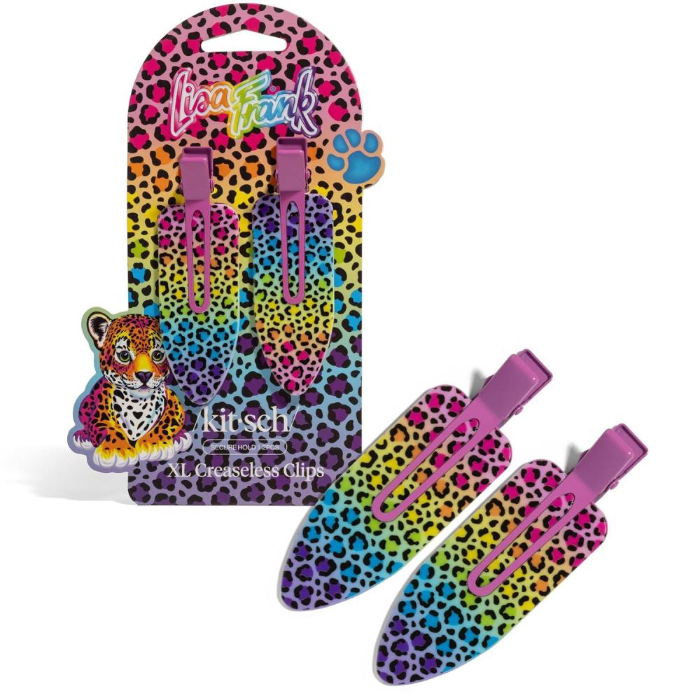 Kitsch Creaseless Hair Clips for Women – No Crease, No Bend Hair Clips for Styling, Bangs, Makeup Application, Face Wash – Recycled Acrylic – Cherry Print | Ideal Gifts for Women, 4pcs(Rainbow Leopard)