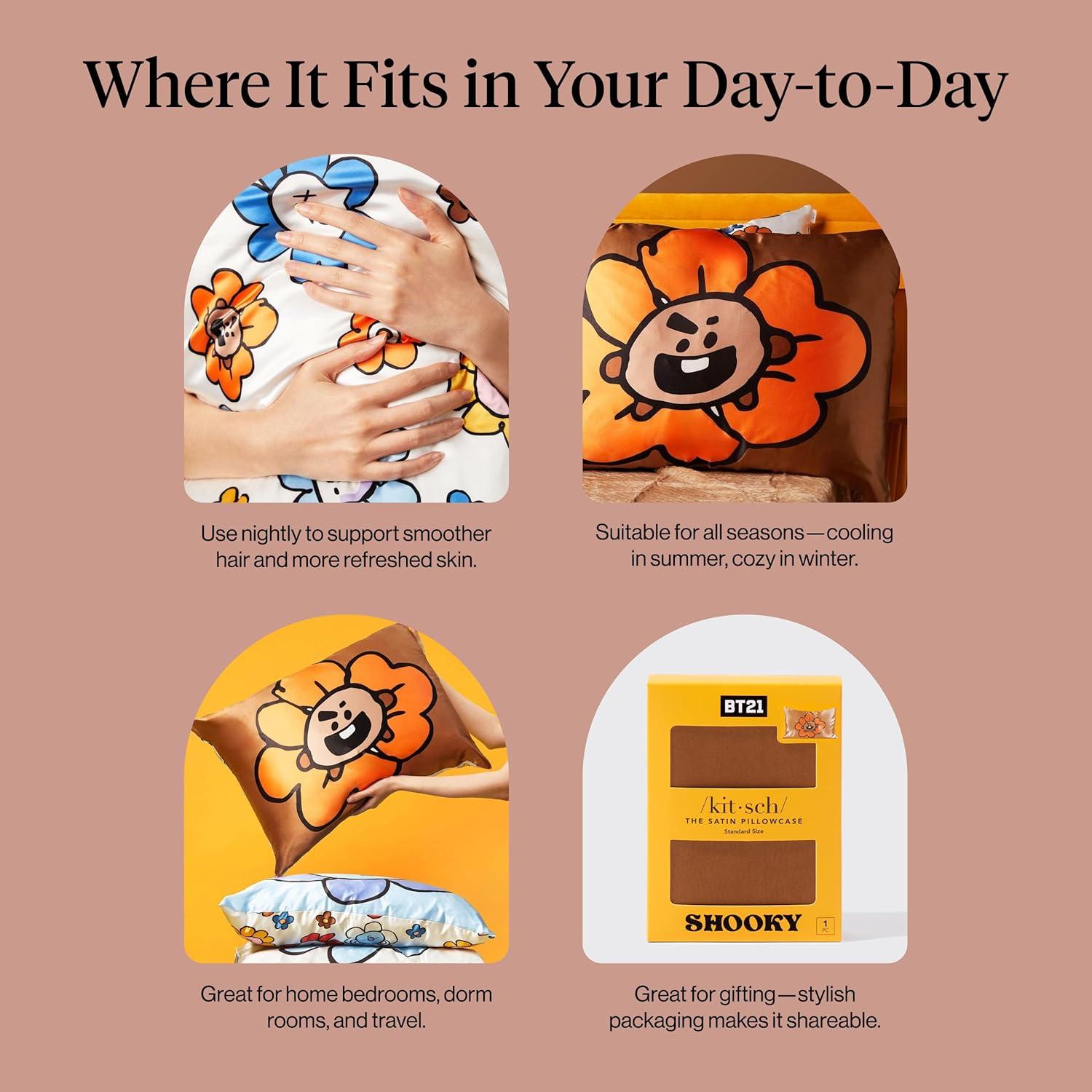 Kitsch & Disney Mickey Mouse Satin Pillowcase with Zipper – Limited-Edition Better Than Silk Pillowcase – Soft Cooling Toddler Bed Time Pillow Case for Hair & Skin – Queen/Standard 19×26(Bt21 – Shooky)