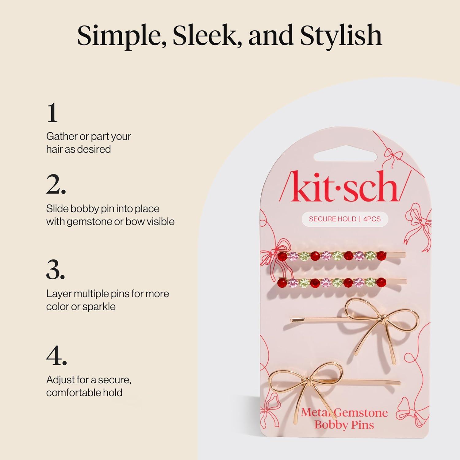 Kitsch Hair Clips for Women & Bobby Pins – Gold Metal Snap Hair Barrettes | Stylish, No Slip, Pain-Free | Ideal for Everyday Hairstyles | Ideal Gifts for Women – Sedona, 8pc Set(Red Pink & Green)